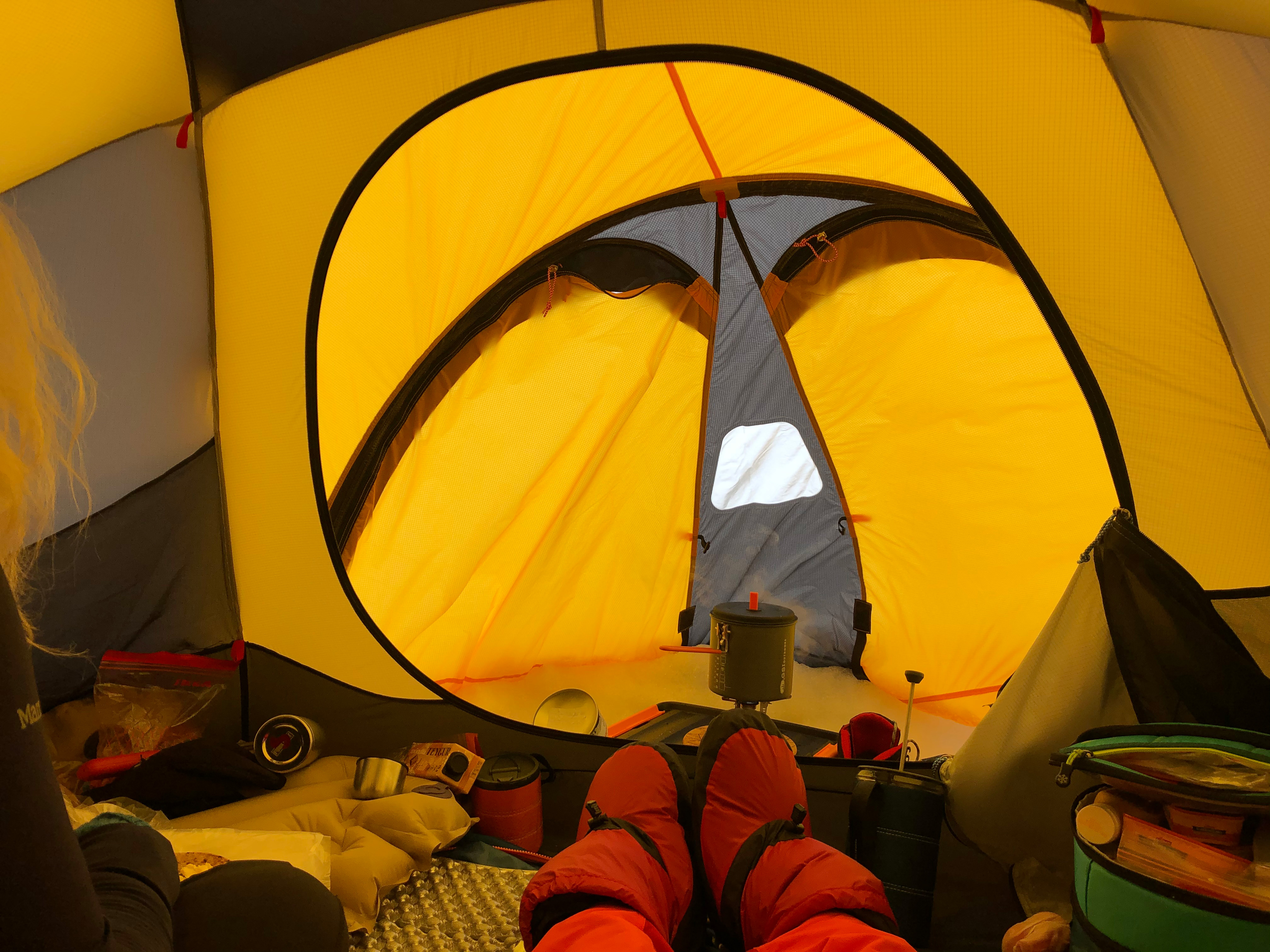 The group quickly put up their tents and settled in, melting water, cooking, and eating. All were energetic, happy, and excited, some so much that it took them an unusually long time to fall asleep that night.