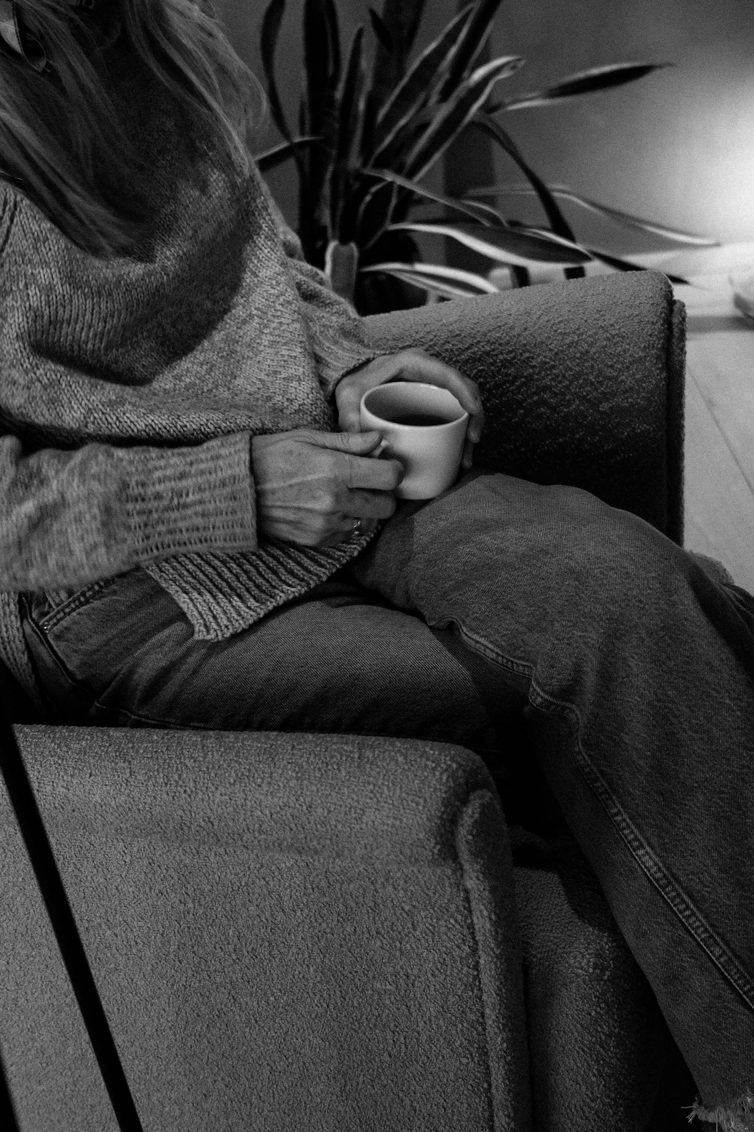 Fríða: „Ég á eina uppáhalds flík og ég nota hana hérna úti í garðinum, hún er líka 25 ára gömul. Það voru svona jakkapeysur með vösum sem var með áferð eins og þær væru prjónaðar, með hettu og rennilás að framan. Og ég var svo ánægð með þessa hönnun því þetta var fyrsta flíkin sem ég sá í heiminum, sem var hönnuð s.s. á konu og var með vasa fyrir síma, ég hafði bara séð það á karlmannsflíkum, og ég var svo ánægð að einhver hönnuður hafi áttað sig á því að konur eru líka í vinnu og þurfa líka að vera með síma á sér. Þannig mér þótti mjög vænt um að sjá þennan fítus á svona flík.“