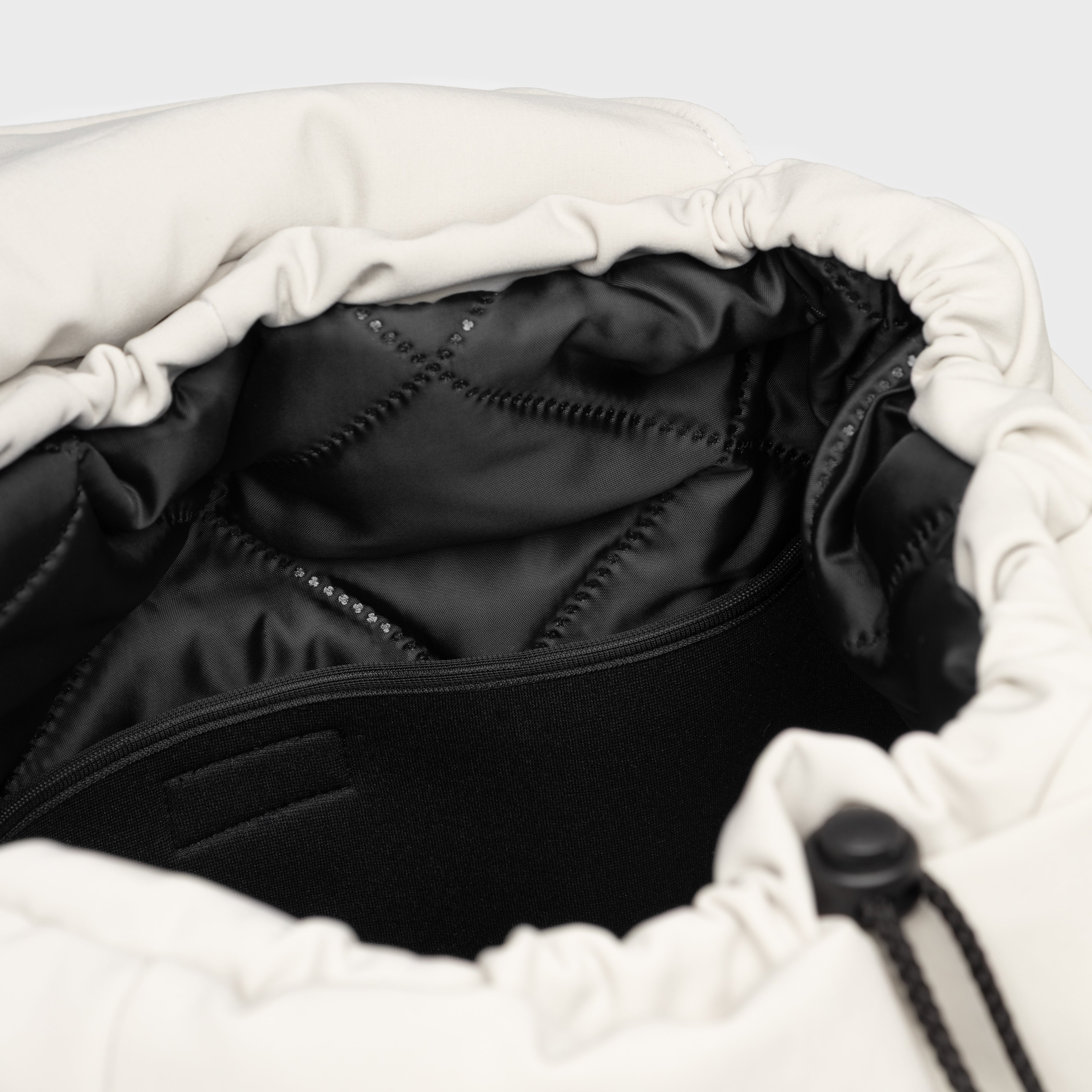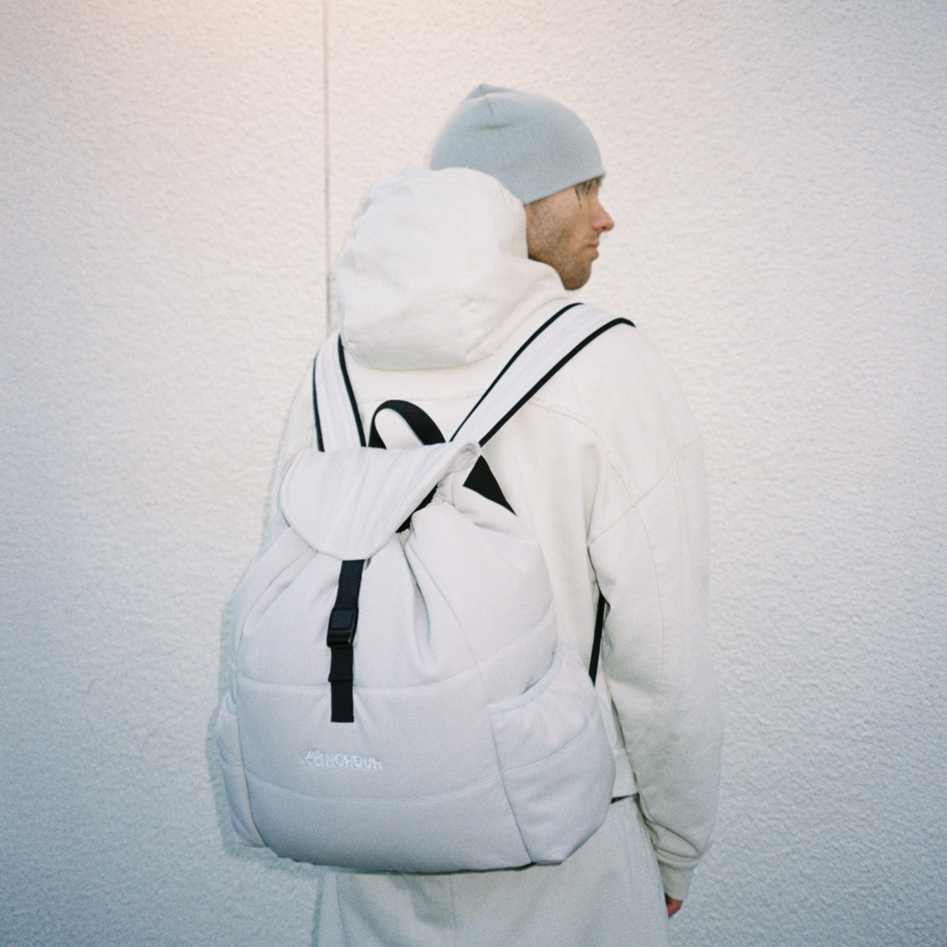 Bakpokinn er byggður á eldri stíl úr vörulínu 66°Norður. Hann er gerður úr Polartec® Power Shield® Pro Softshell efni sem andar vel, teygist á fjóra vegu, gefur vel eftir og er mjúkt viðkomu. Bakpokinn er með þrefaldri Polartec® Power Fill™ örtrefjafyllingu sem gefur honum skemmtilegt útlit. Samstarfslógóið má finna framan á honum. Þessi stíll er gerður úr afgangsefnum sem styður við sjálfbærnistefnu fyrirtækisins.