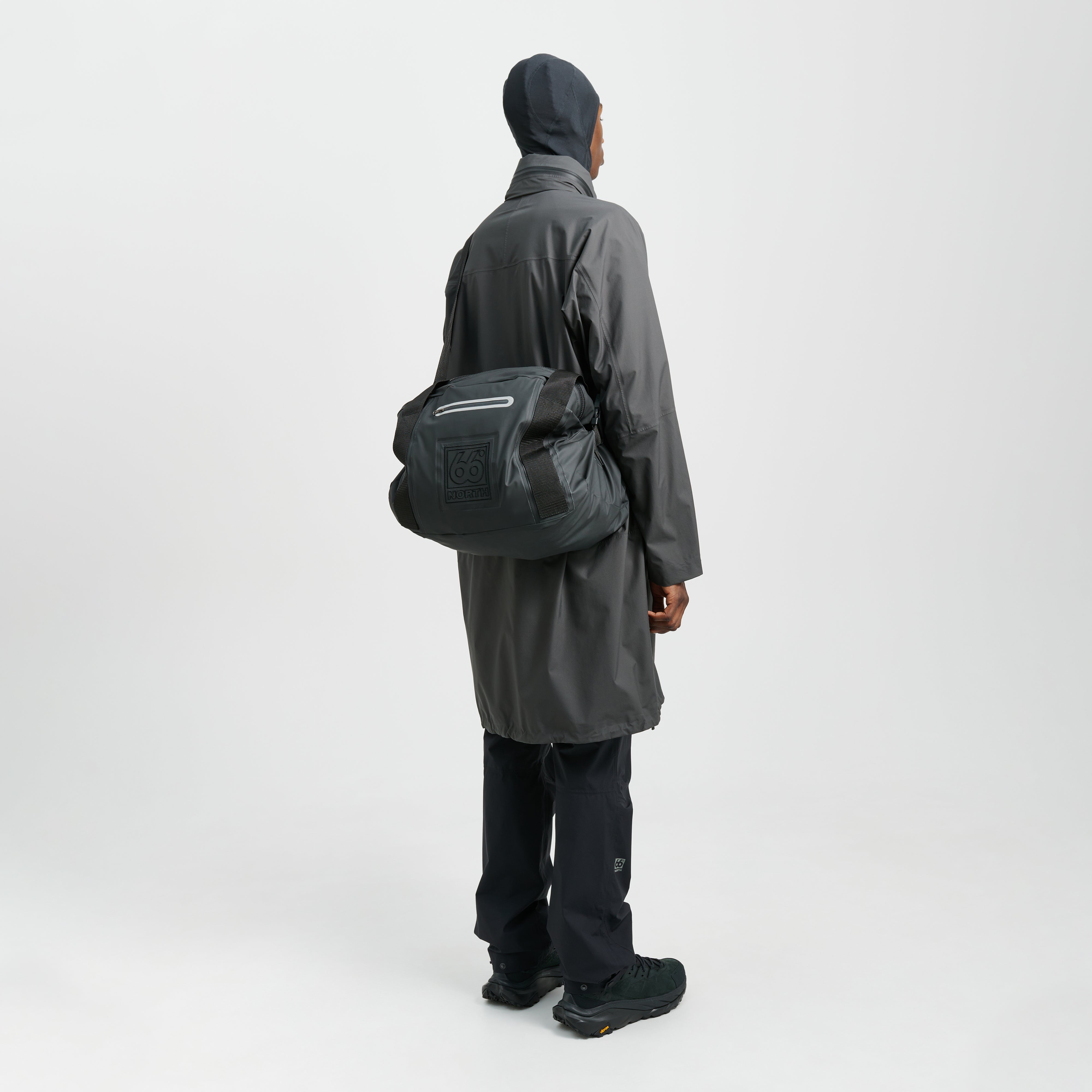 35L taska framleidd úr afgangsefni úr verksmiðju okkar, en það er okkur mikilvægt að nýta allt efni eins vel og við getum til þess að koma í veg fyrir sóun. Taskan hentar vel sem íþróttataska eða fyrir hvers kyns ferðalög. Efnið í töskunni er vatnshelt, slitsterkt og vatterað að innan sem ver farangurinn fyrir hnjaski. Renndur vasi að framan með endurskini og vatnsheldum rennilás. Þrjú opin hólf innan í töskunni fyrir litla hluti. Stillanleg ól sem hægt er að smella af.