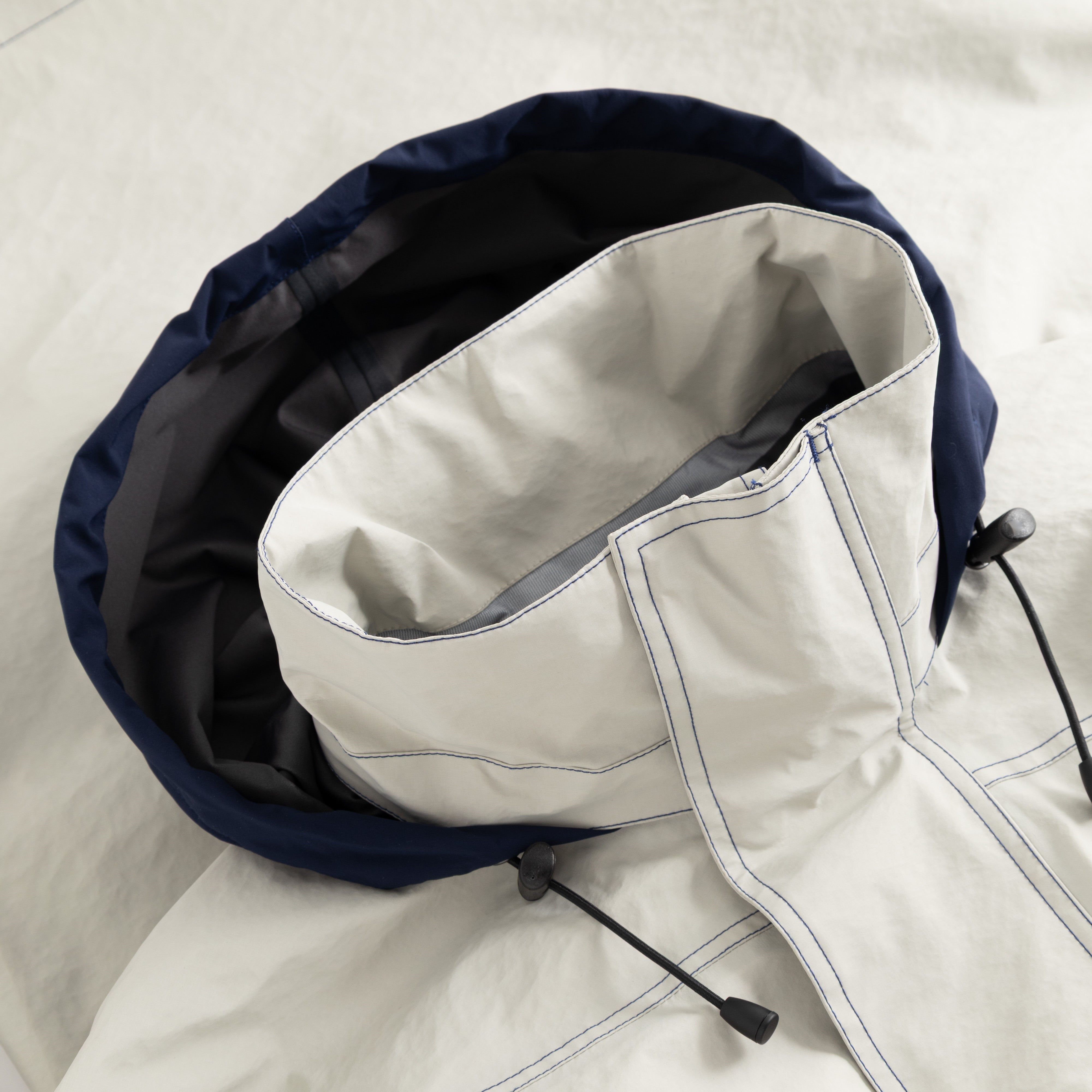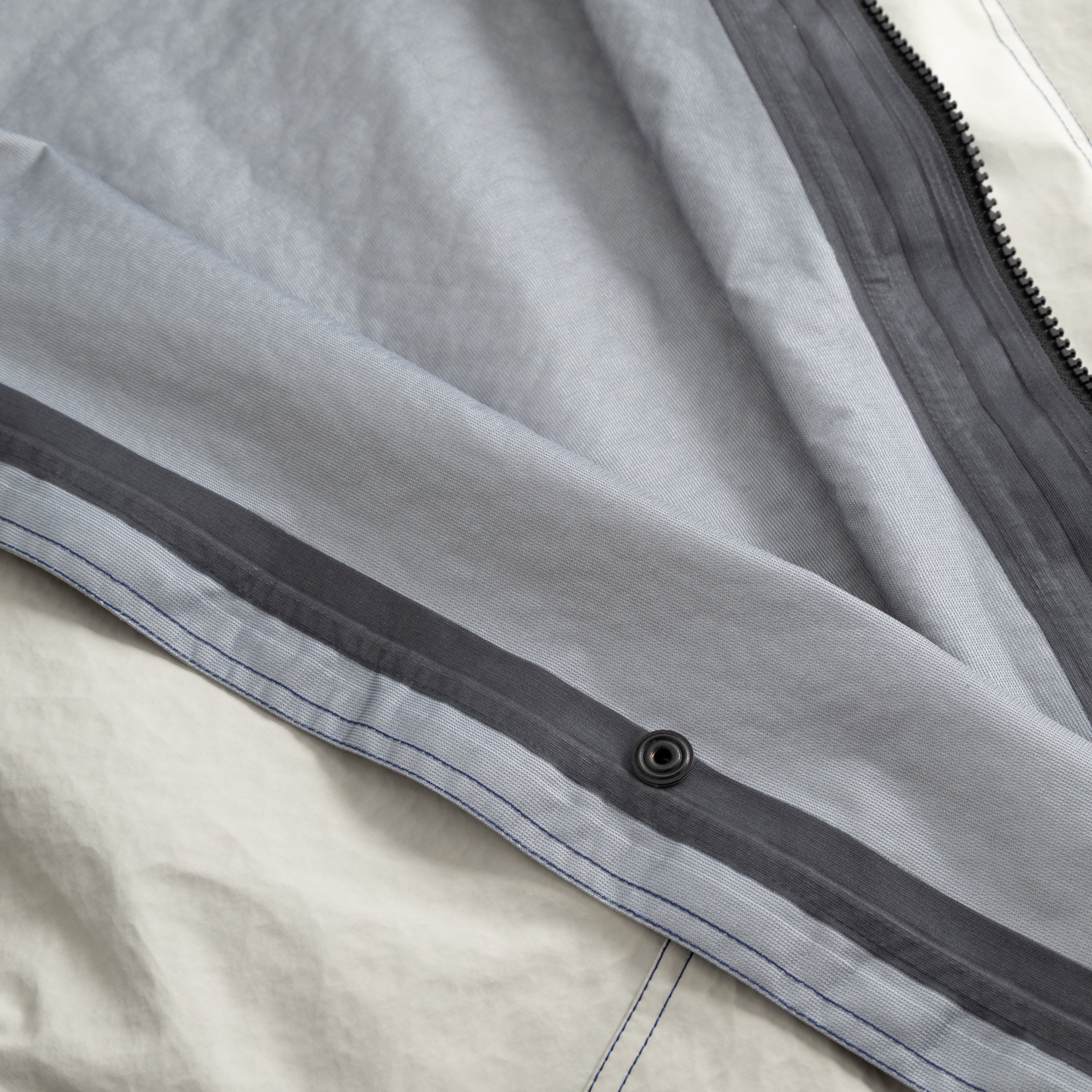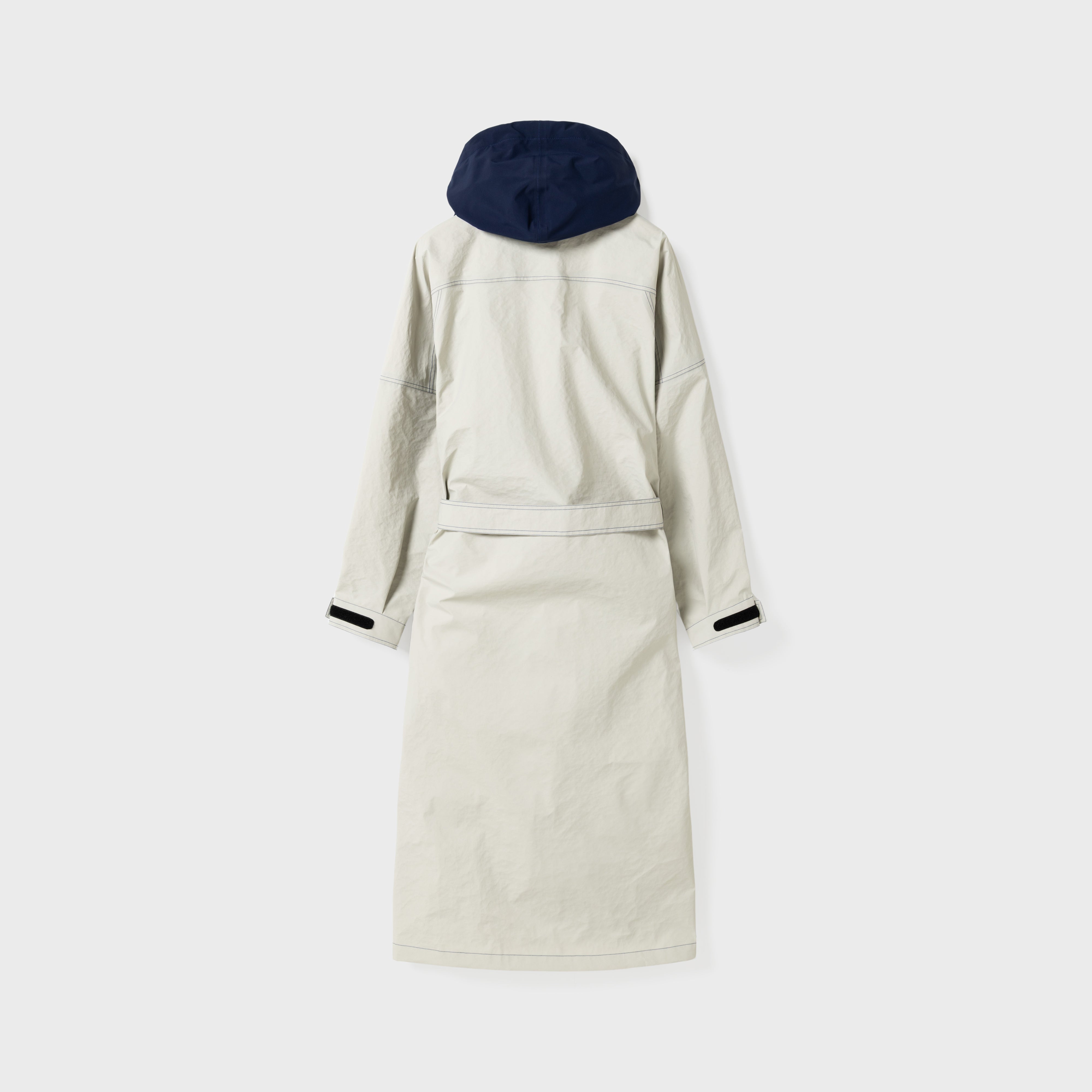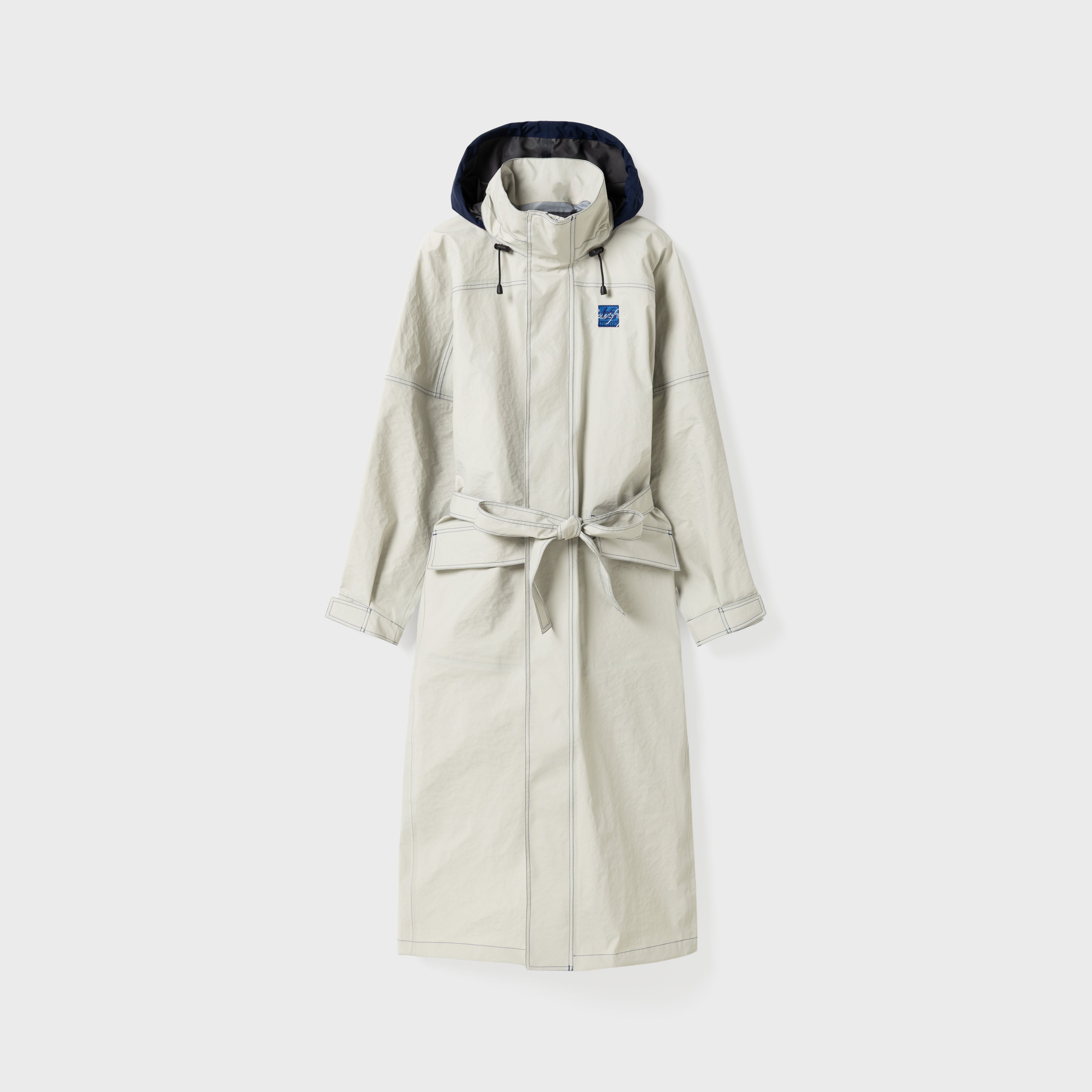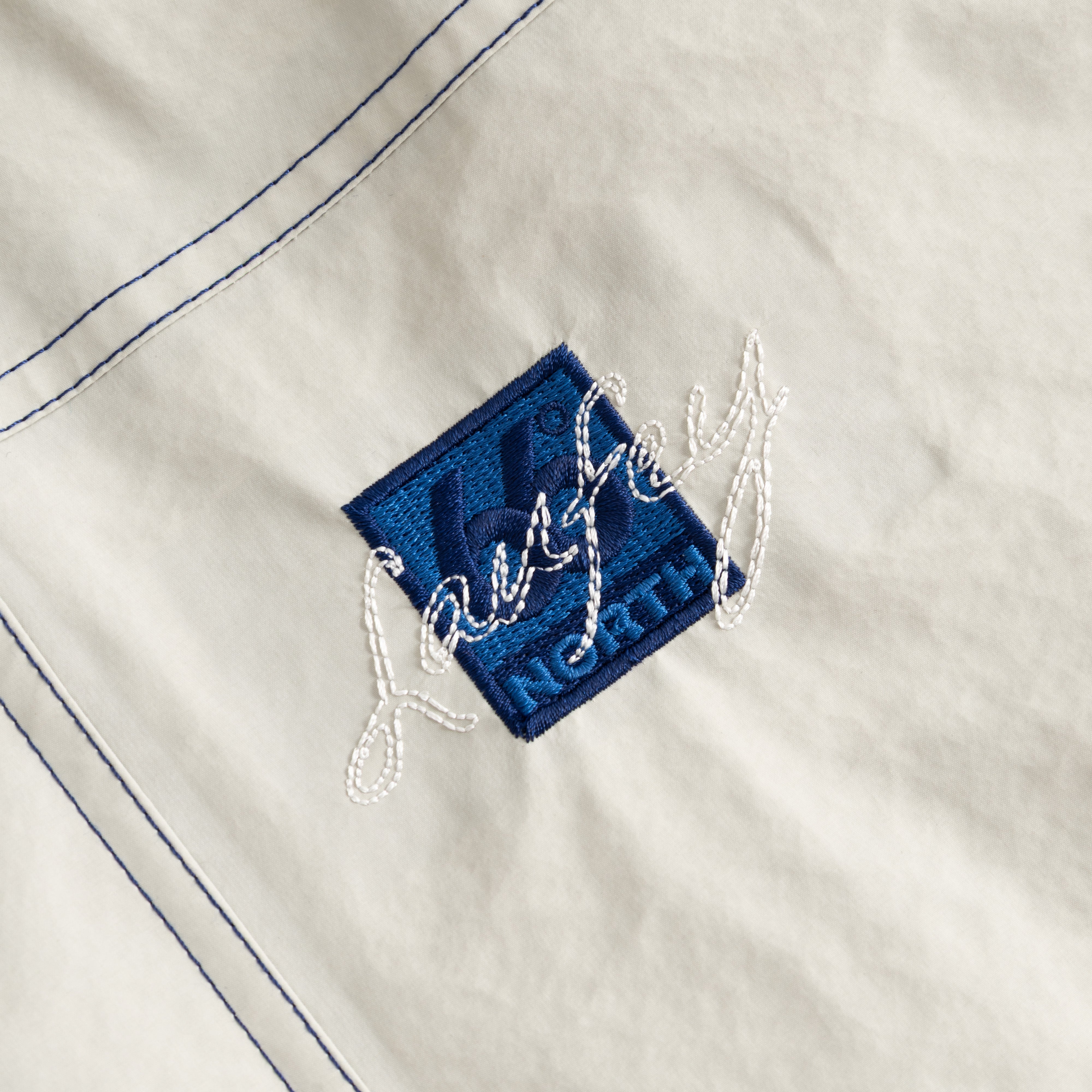 Endingargóð skel kápa úr þriggja laga efni með 10.000 mm vatnsheldni. Hún er með hettu sem hægt er að pakka í kragann, stillanlegu mittisbelti og samstarfslógói 66°Norður og Laufeyjar.