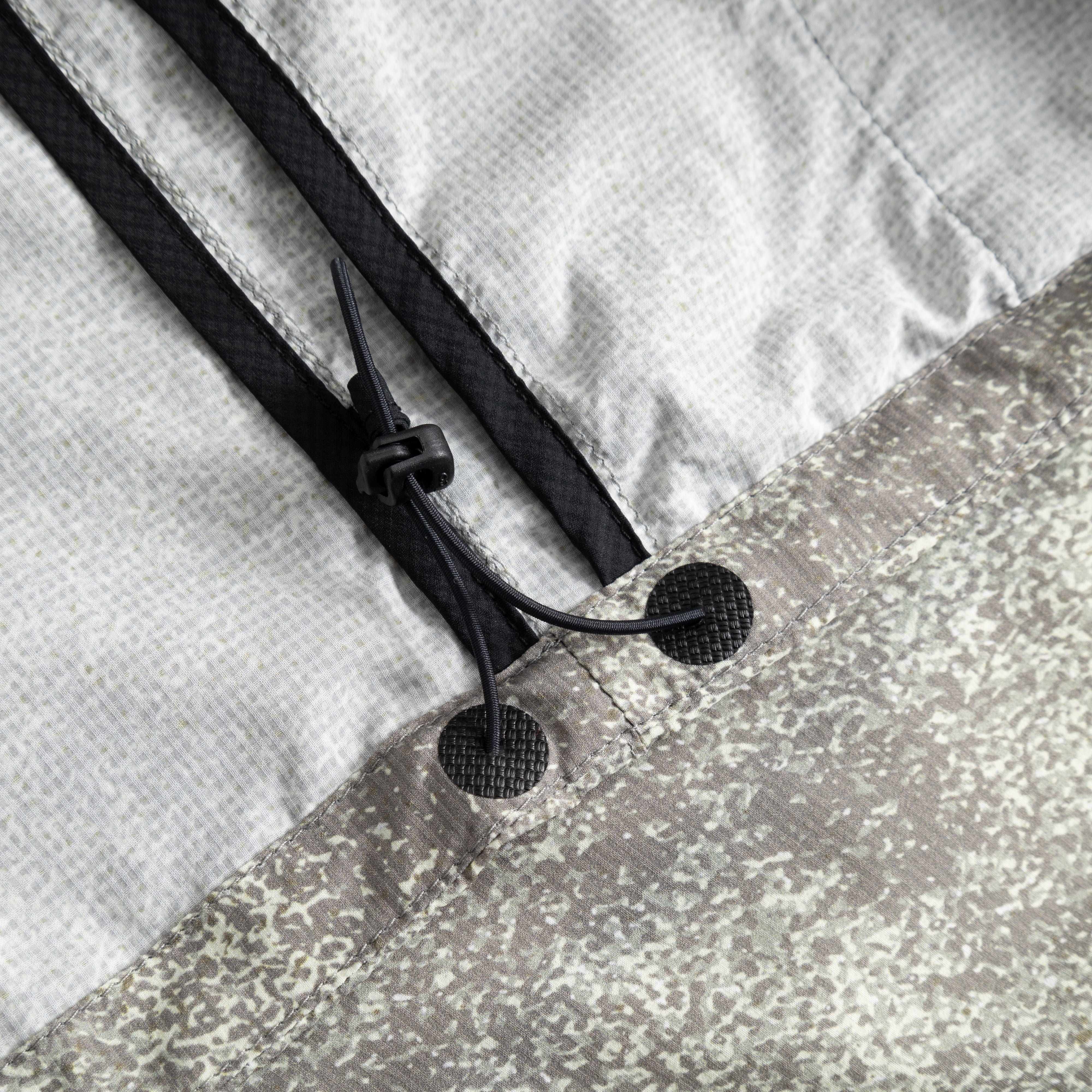 Efnið hrindir frá sér léttum regndropum og flýtir fyrir þornun. Það er einnig með lykteyðandi eiginleika, veitir UV 50+ vörn gegn sólargeislum og er án allra PFAS-efna.