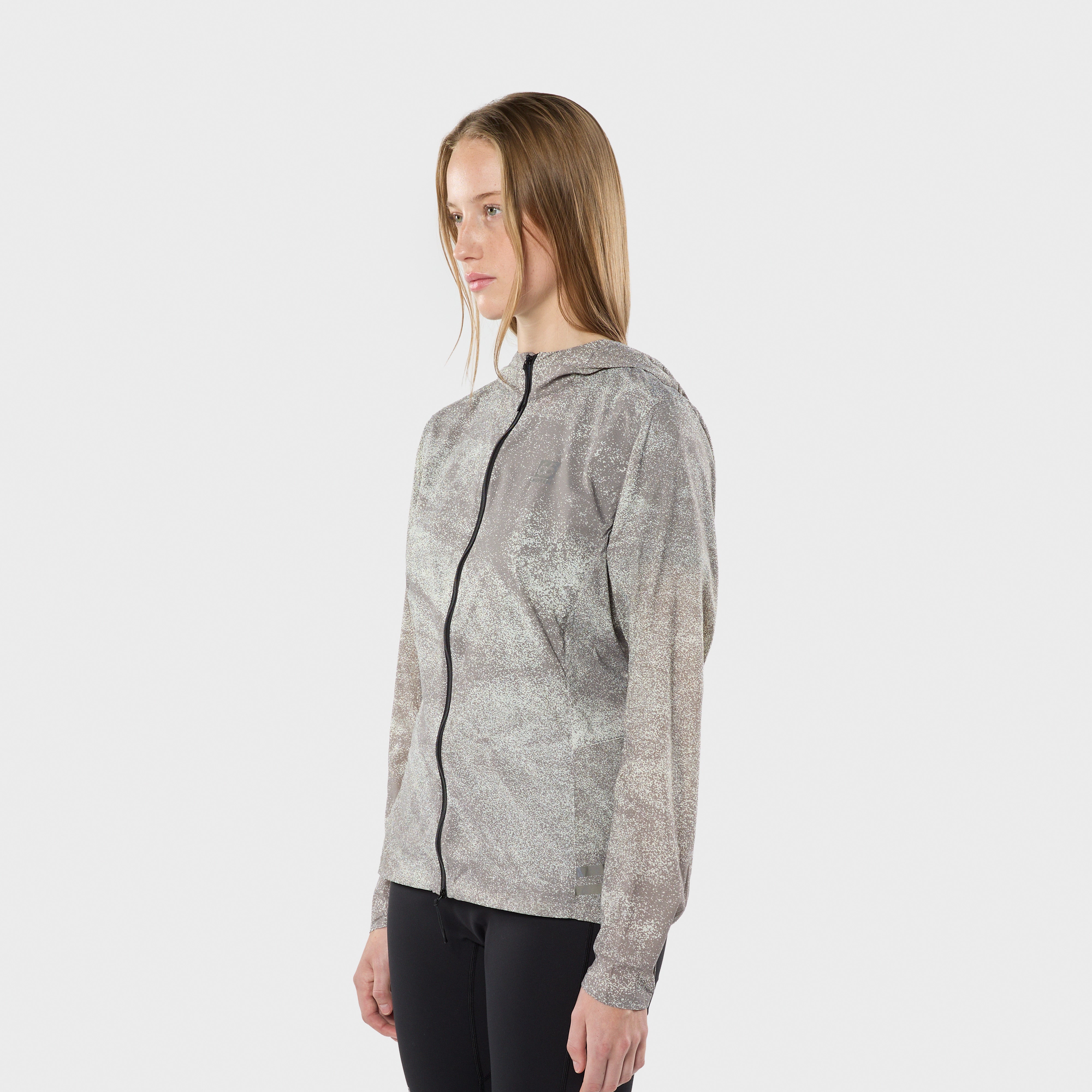 Á hliðinni er renndur vasi með krók fyrir lyklakippu. Einnig er hægt að pakka jakkanum saman í vasann svo hann taki mjög lítið pláss og má þá auðveldlega koma honum fyrir í vasa á stuttbuxum eða vesti, jafnvel án þess að stoppa.