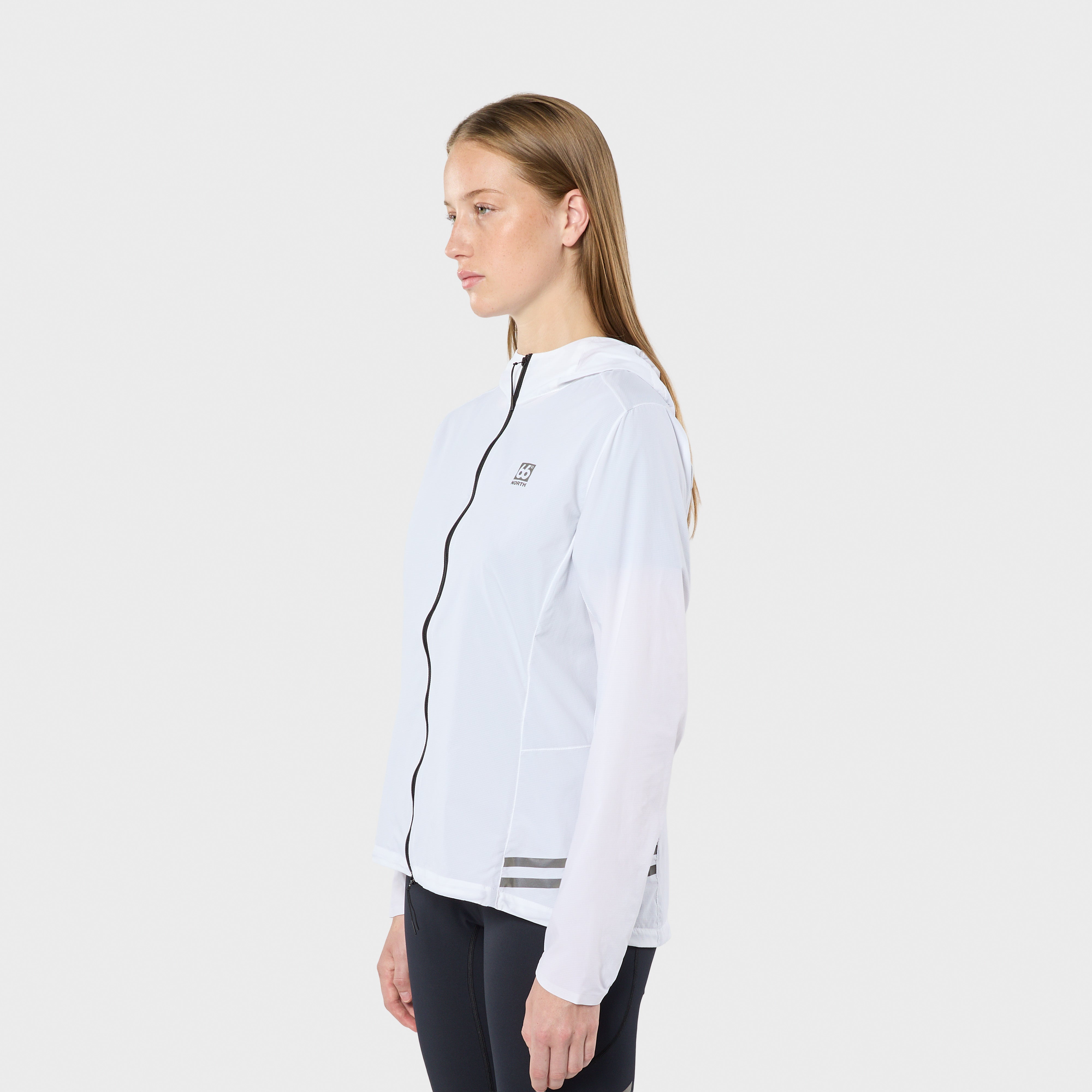 Rúmt og teygjanlegt snið fyrir góða hreyfigetu, stillanleg hetta og stillanlegur faldur með léttum snúrugöngum með teygju. Rennilás sem gengur í báðar áttir og lógó með endurskini og endurskins rendur fyrir aukinn sýnileika.