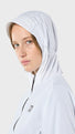 Efnið hrindir frá sér léttum regndropum og flýtir fyrir þornun. Það er einnig með lykteyðandi eiginleika, veitir UV 50+ vörn gegn sólargeislum og er án allra PFAS-efna.