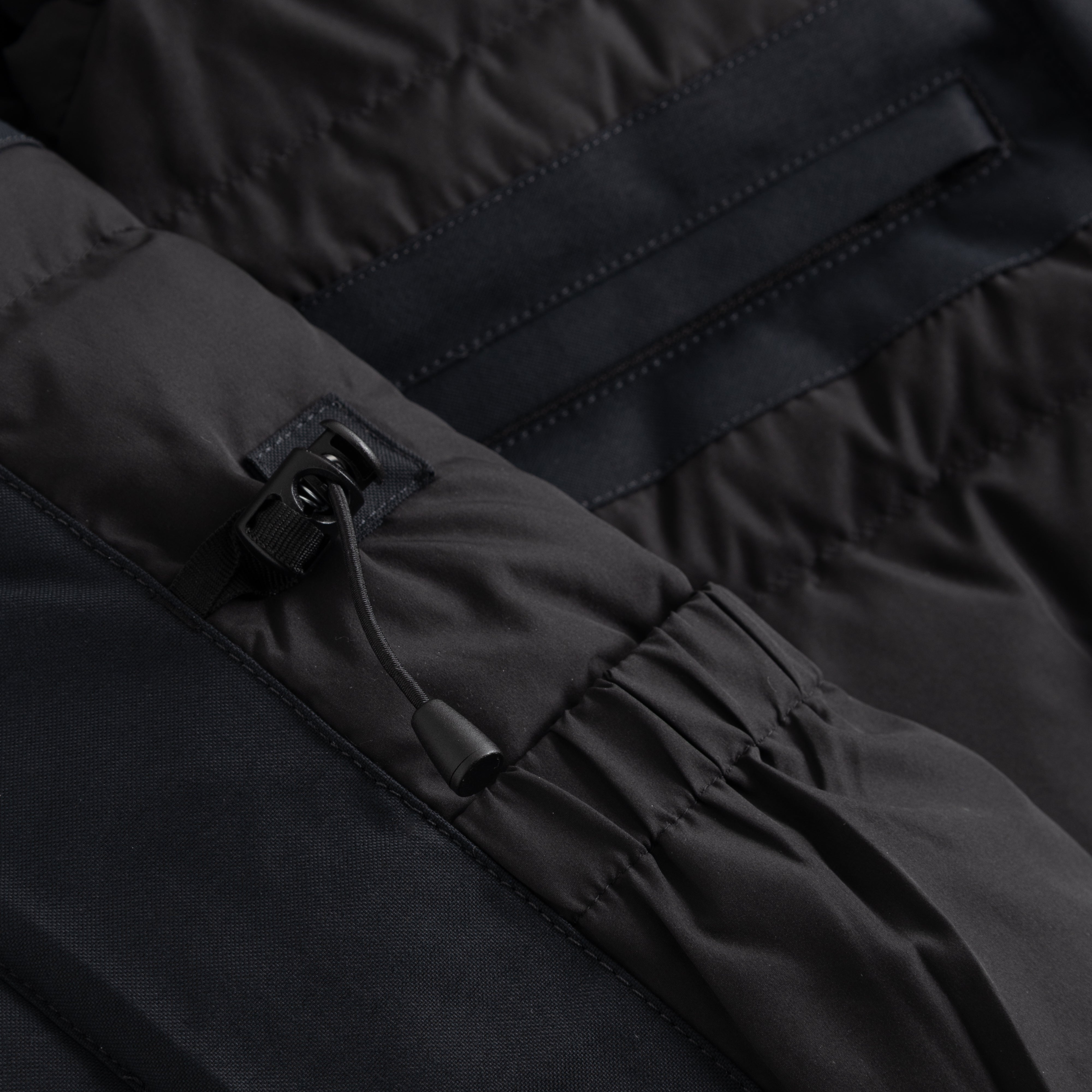 Úlpan er einangruð eins og best verður á kosið, með 90% 800 fill power gæsadúni og 10% fjöðrum. Úlpan er með fimmtán vasa og endurskin á baki og ermum.