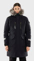 Jökla parka er í kvenlegu sniði, hnésíð og aðsniðin. Fyrir þær sem eru á milli stærða mælum við með að taka stærri stærðina. Snúrugöng í mitti.
