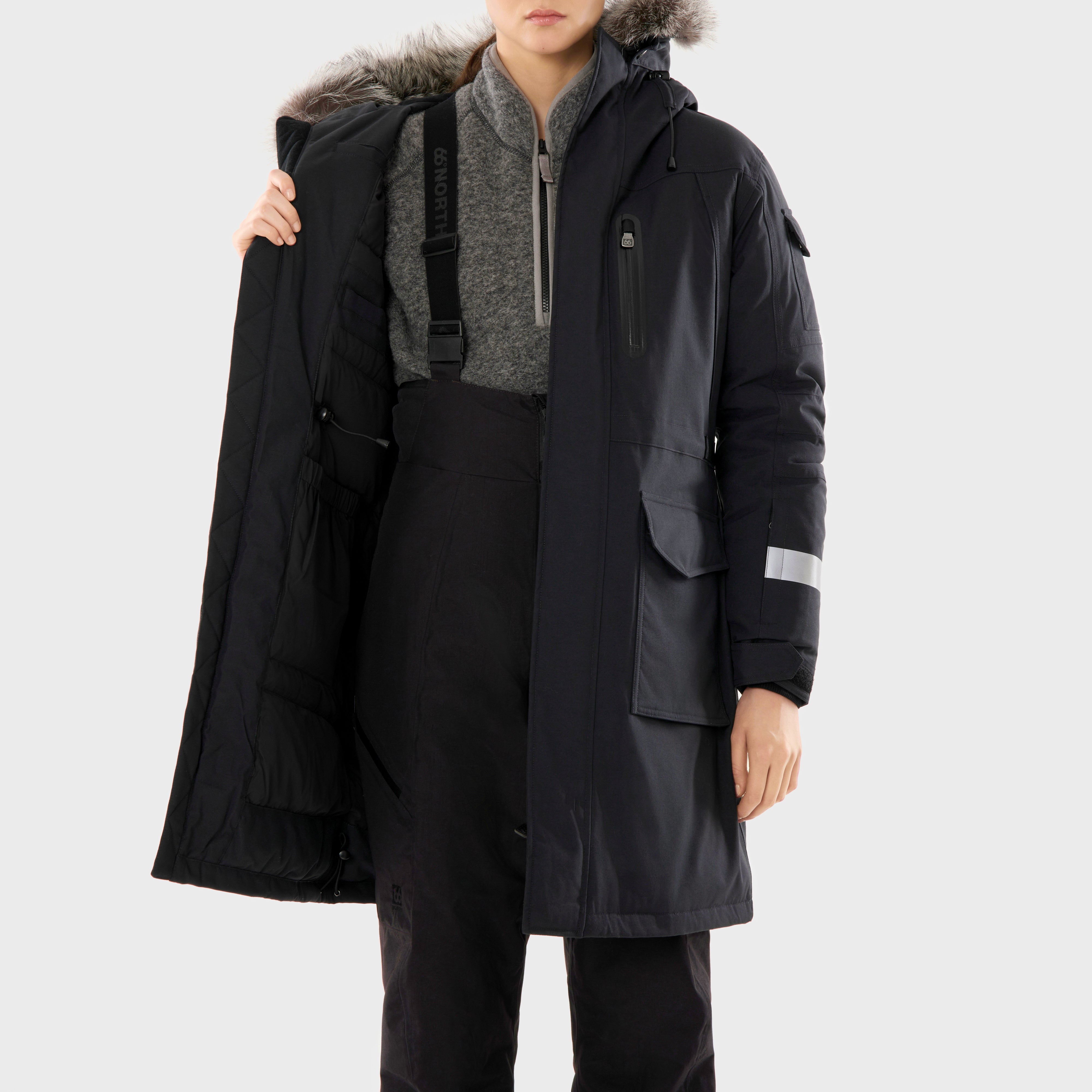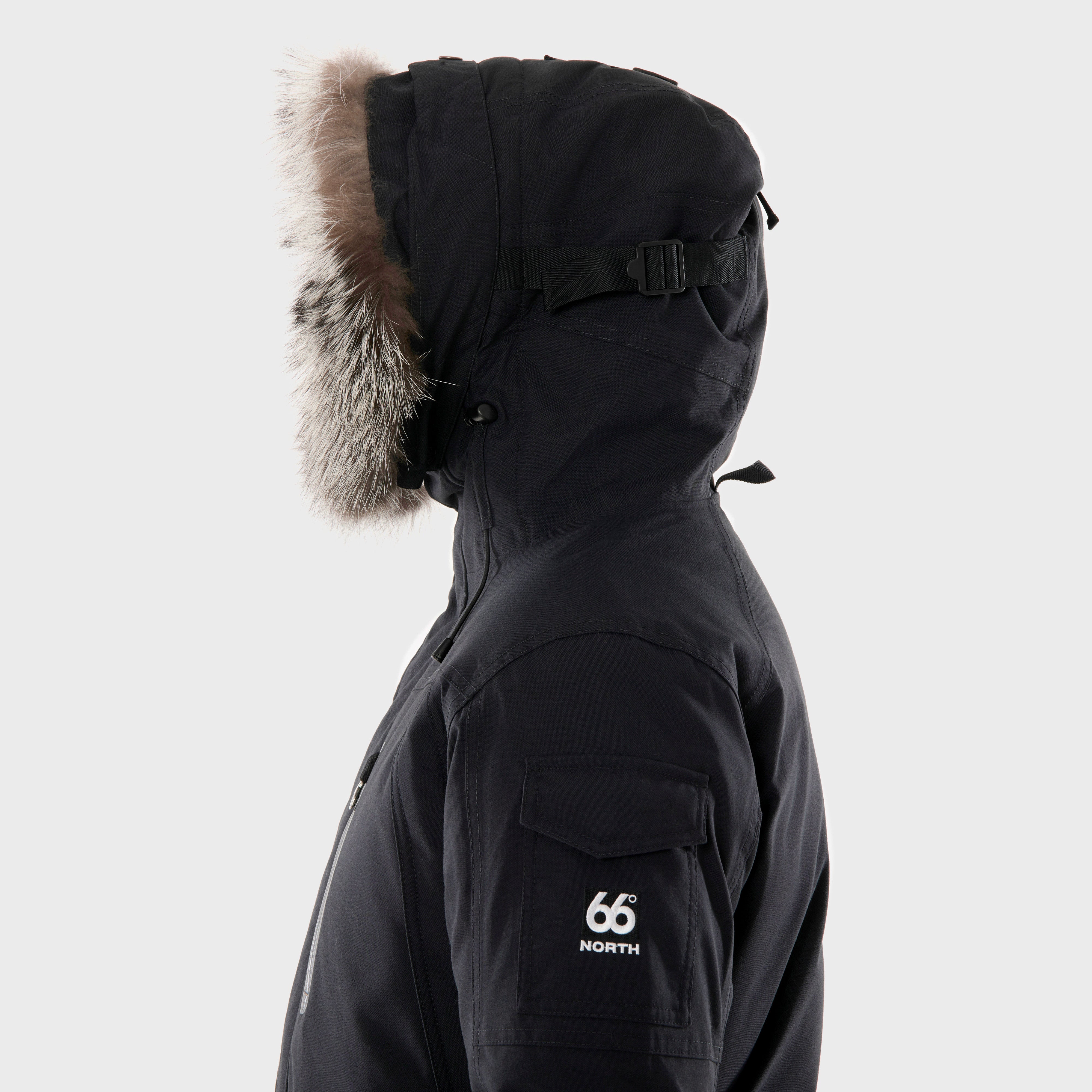 Öll dýraafurð sem notuð er í vörum 66°Norður kemur frá siðferðilega vottuðum aðilum. Dúninn kemur frá margreyndum þýskum birgja sem er vottaður samkvæmt Responsible Down Standard (RDS) Downpass og STANDARD 100 by OEKO-TEX®. Á úlpunni er loðskinn sem hægt er að taka af. Loðskinnin eru útveguð og sérvalin af Feld Verkstæði, fyrirtæki með mikla reynslu af framleiðslu á skinnvörum og loðfeldum, sem tryggir bæði gæði og ábyrgt innkaupaferli fyrir íslenskan markað. Skinnin sjálf eru framleidd af Saga Furs.