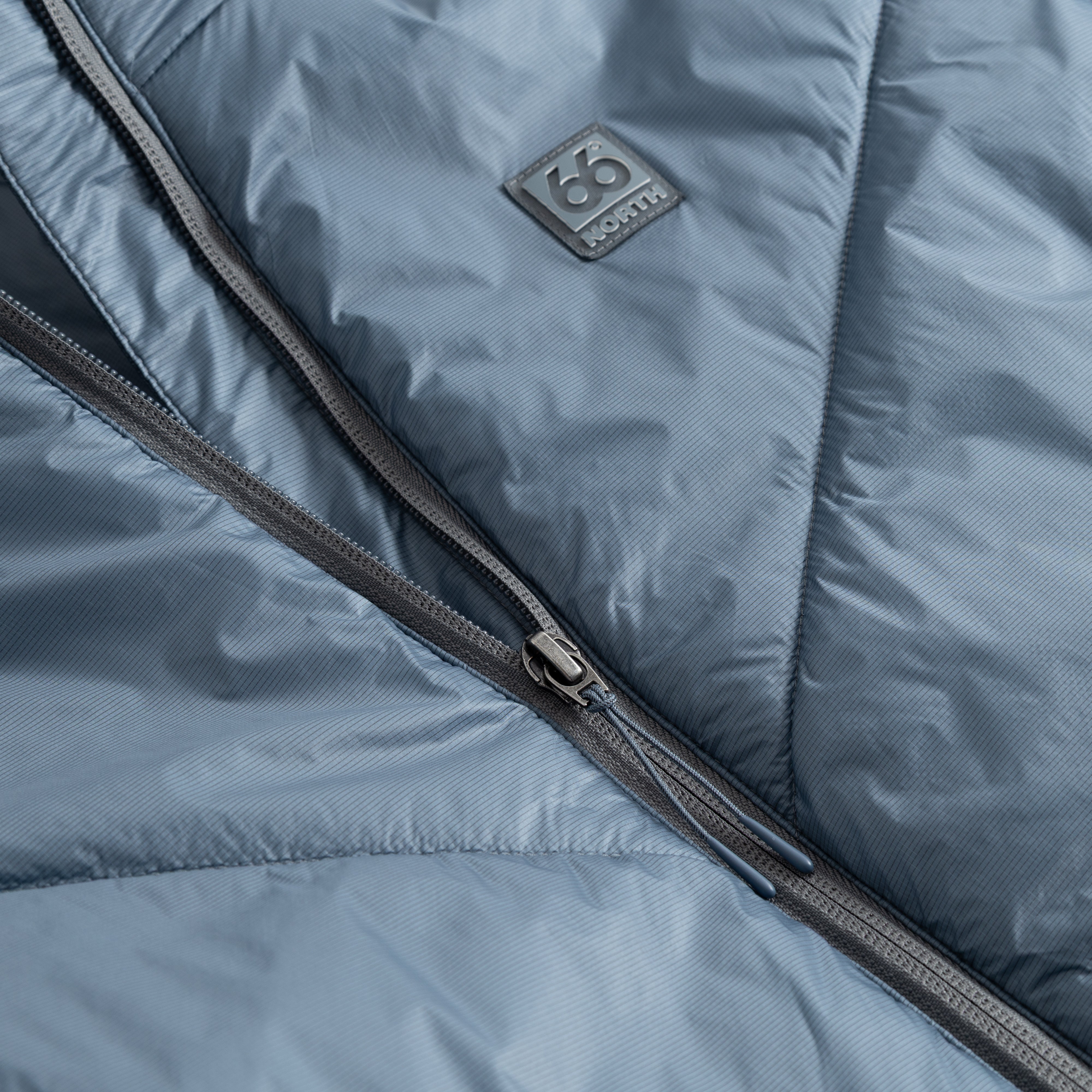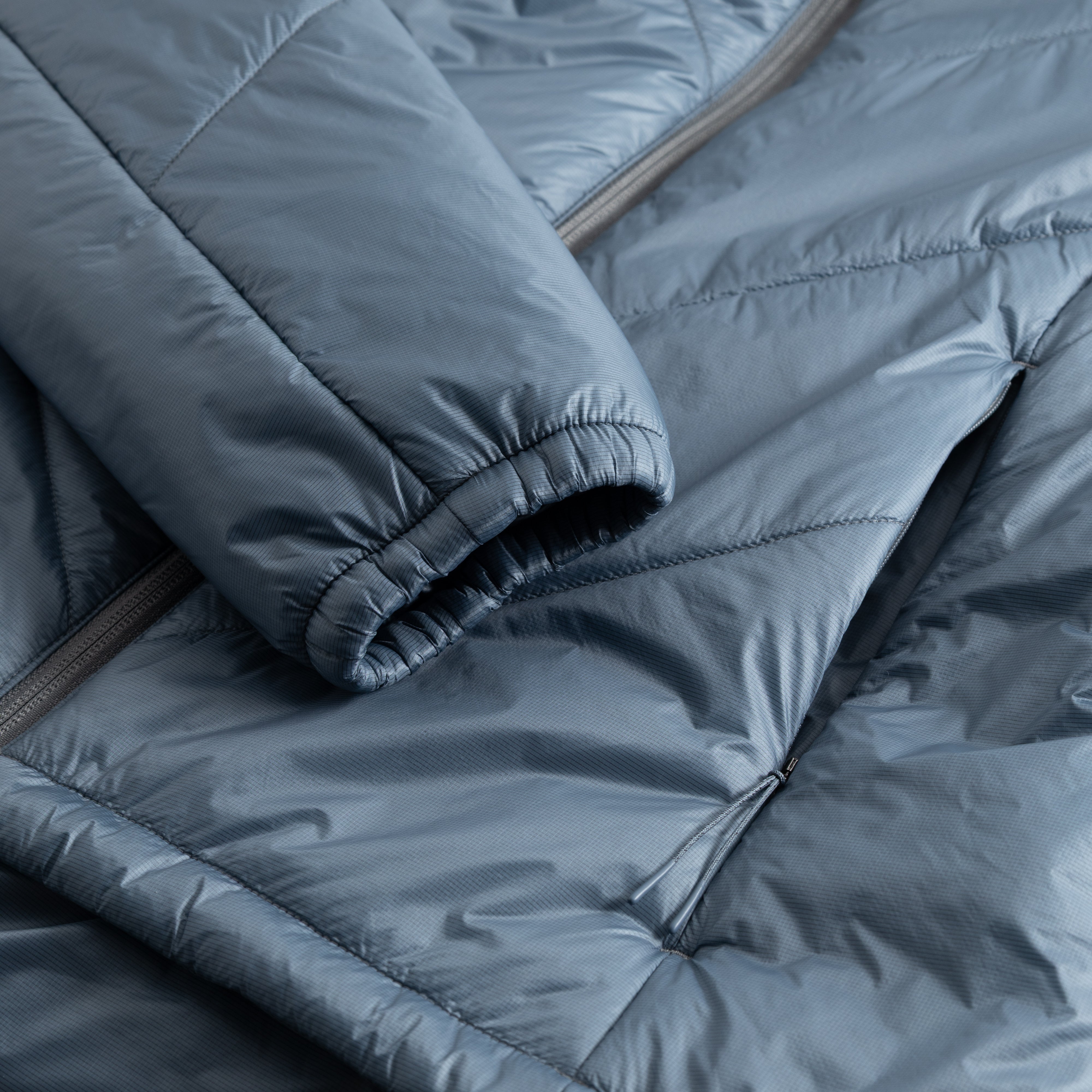 Jakkinn er gerður úr blöndu af léttu nylon efni og grafín sem auðveldar hitastjórnun, þar sem grafín hefur hitaleiðandi eiginleika sem veitir hlýju á veturna og kælingu á sumrin. Inn í kraganum er létt hetta, ekki með einangrun. Tveir renndir vasar að framan sem henta vel með bakpoka og stillanleg teygja í mitti til að aðlaga snið. Með jakkanum fylgir poki sem auðvelt er að pakka jakkanum í.