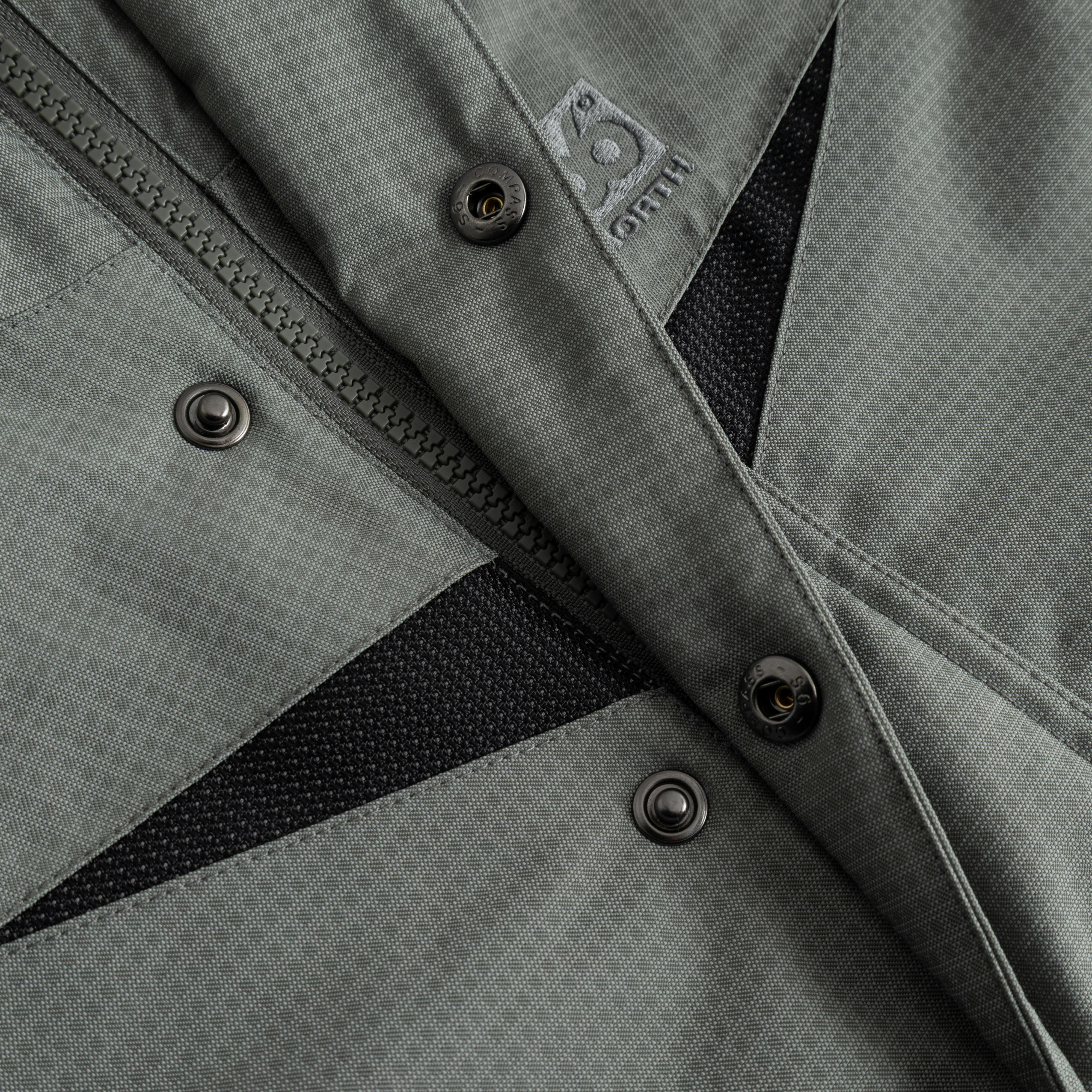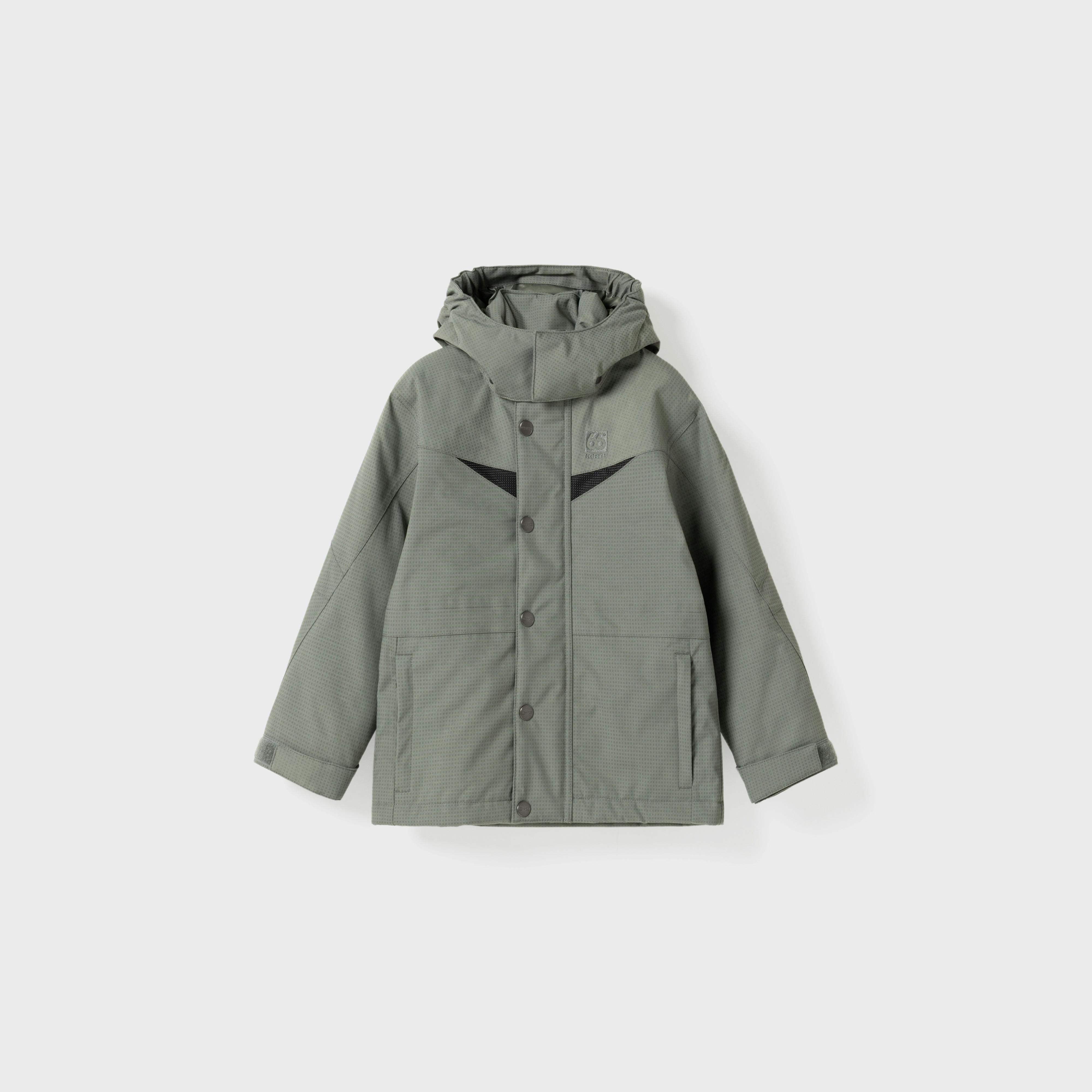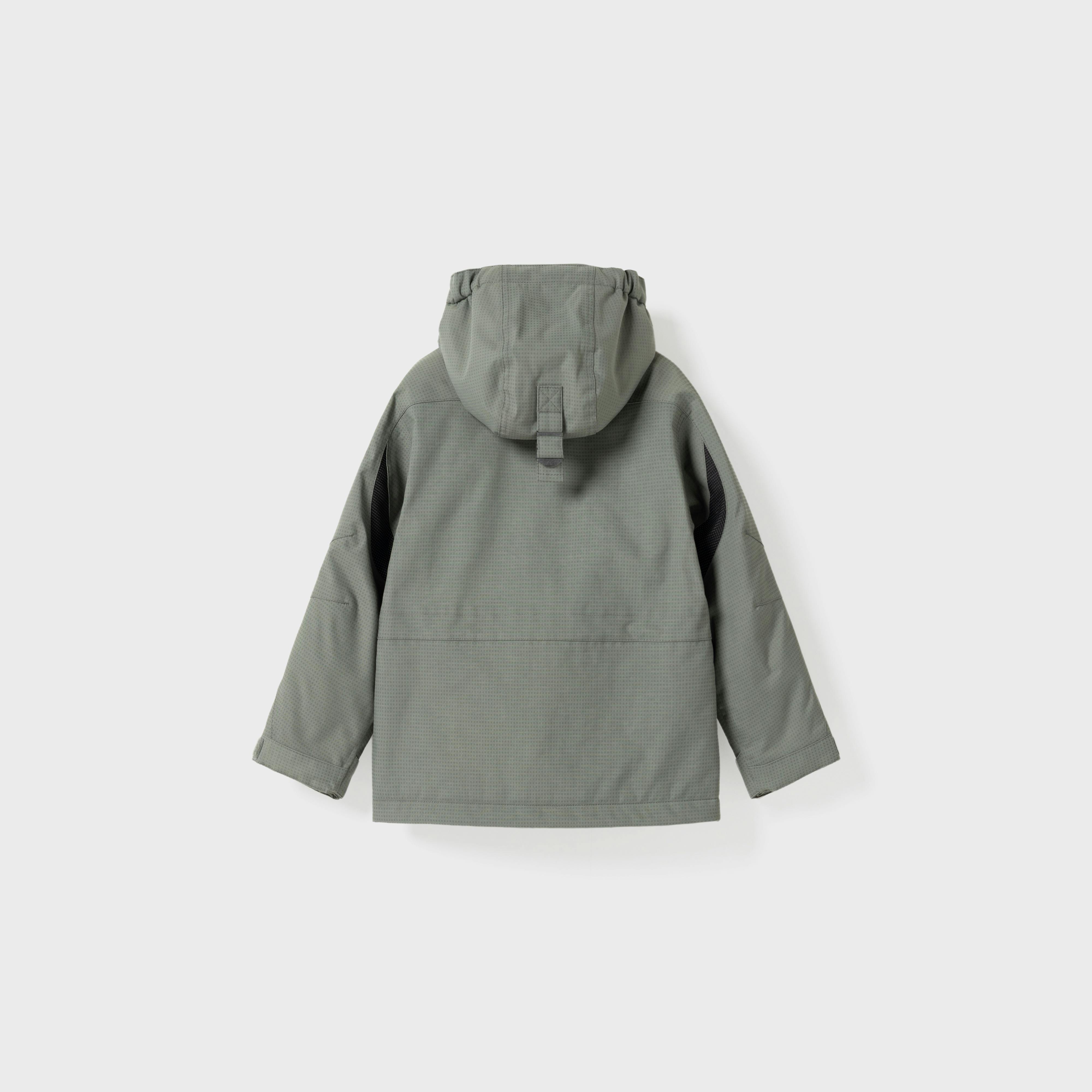 Úlpan er með tvo rennda vasa að framan og einn renndan vasa að innan. Endurskinsefni á bringu og ermum eykur sýnileika í myrkri. Riflásar um úlnliði, snúrugöng með teygju í mitti og neðri faldi gera kleift að aðlaga sniðið, og hetta sem hægt er að smella af.