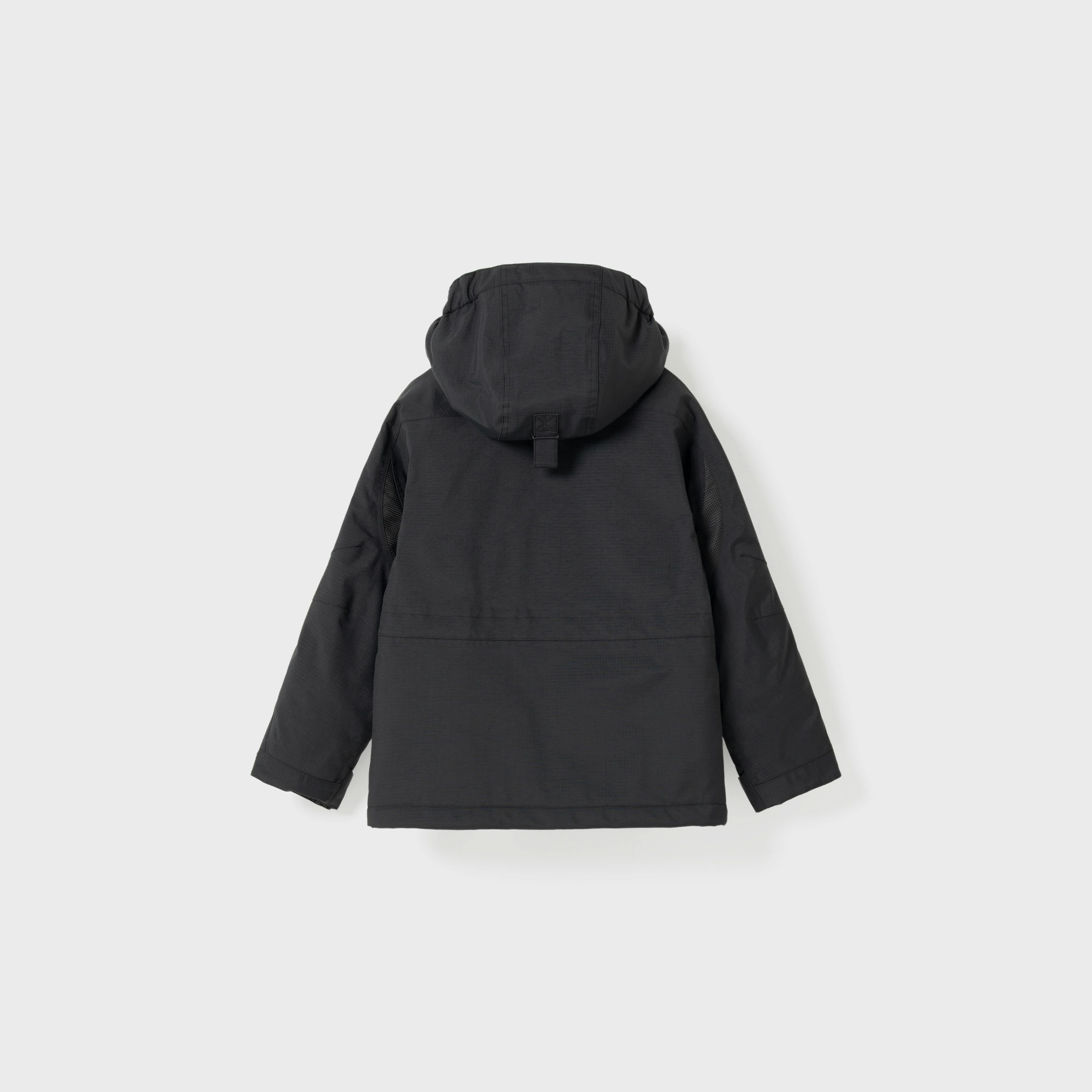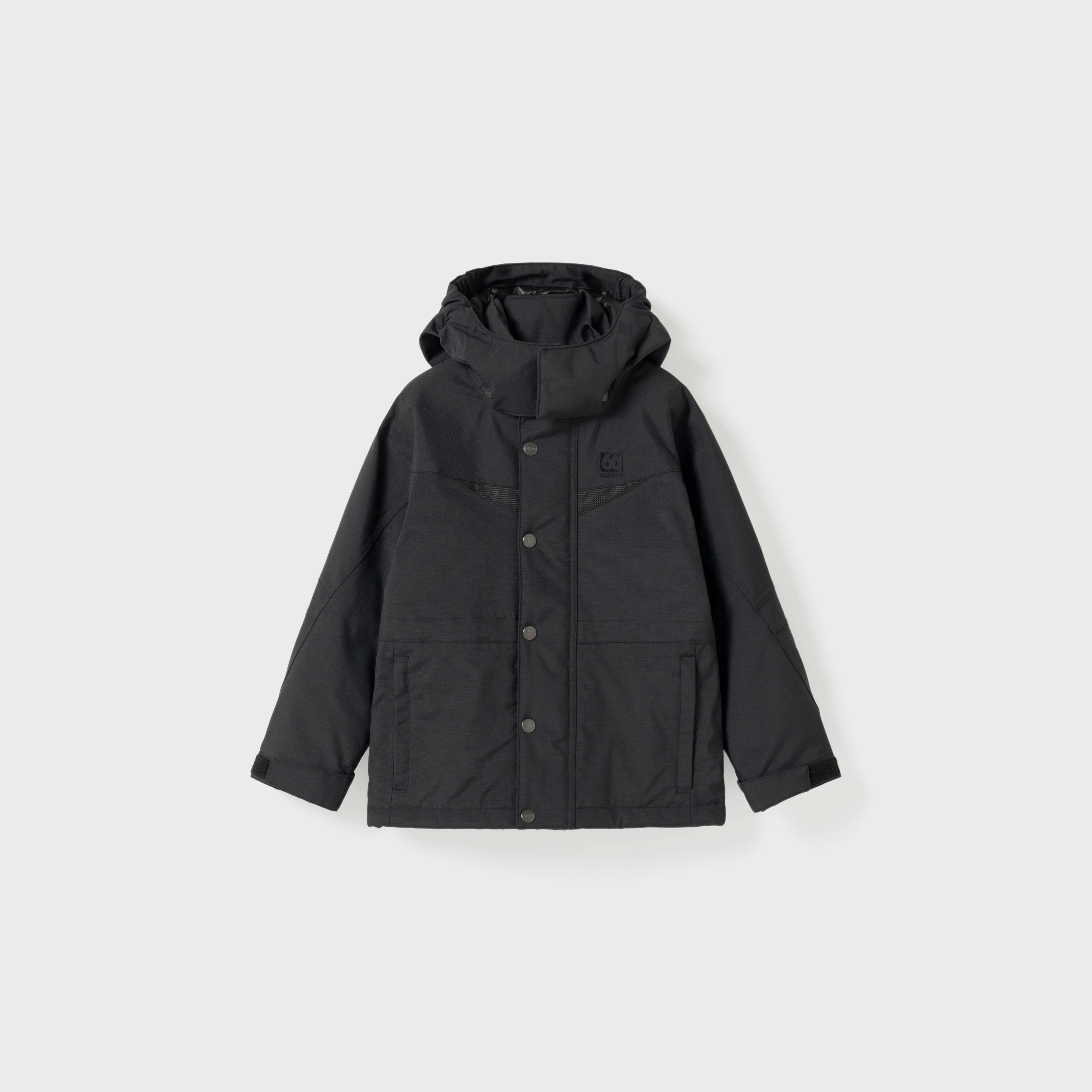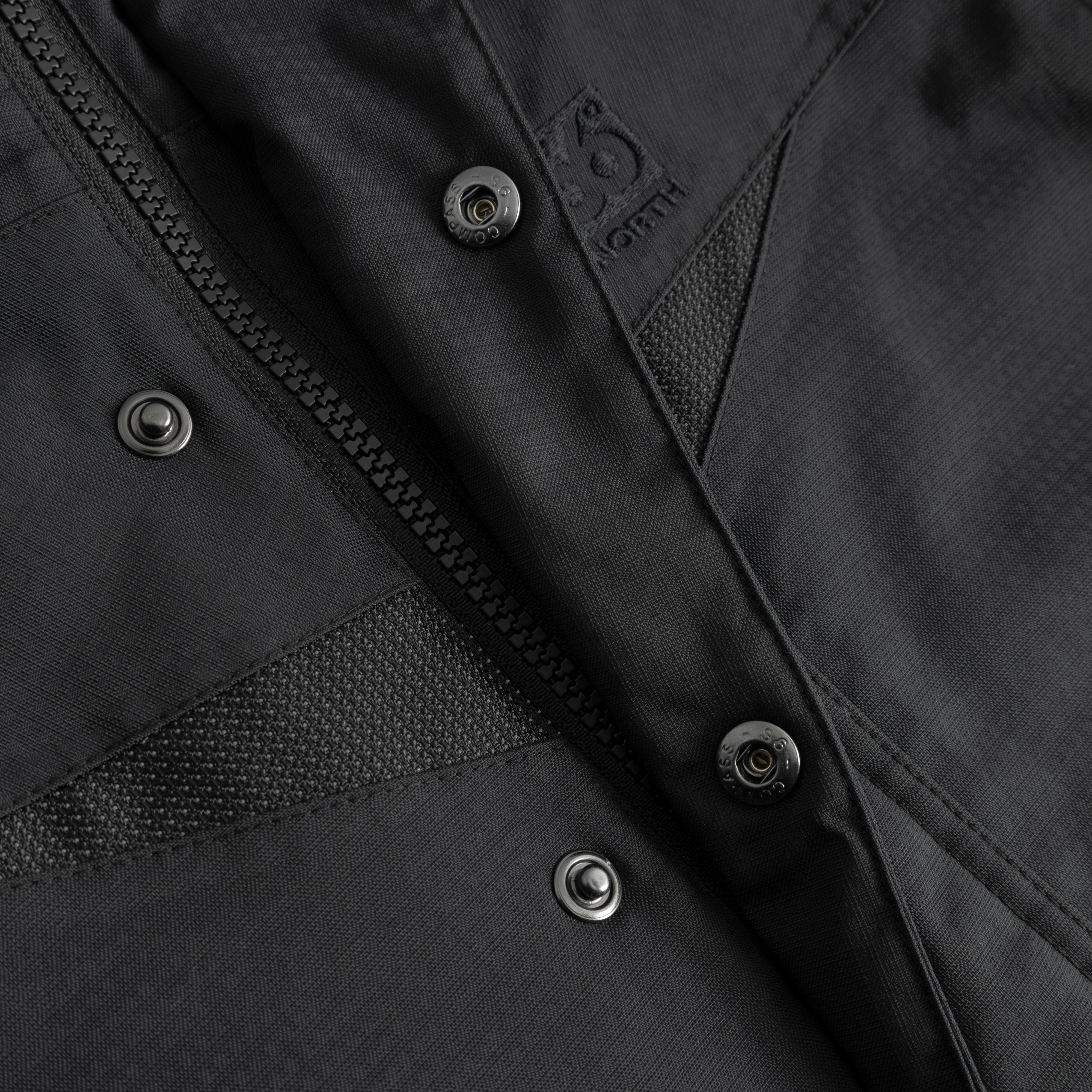 Úlpan er með tvo rennda vasa að framan og einn renndan vasa að innan. Endurskinsefni á bringu og ermum eykur sýnileika í myrkri. Riflásar um úlnliði, snúrugöng með teygju í mitti og neðri faldi gera kleift að aðlaga sniðið, og hetta sem hægt er að smella af.