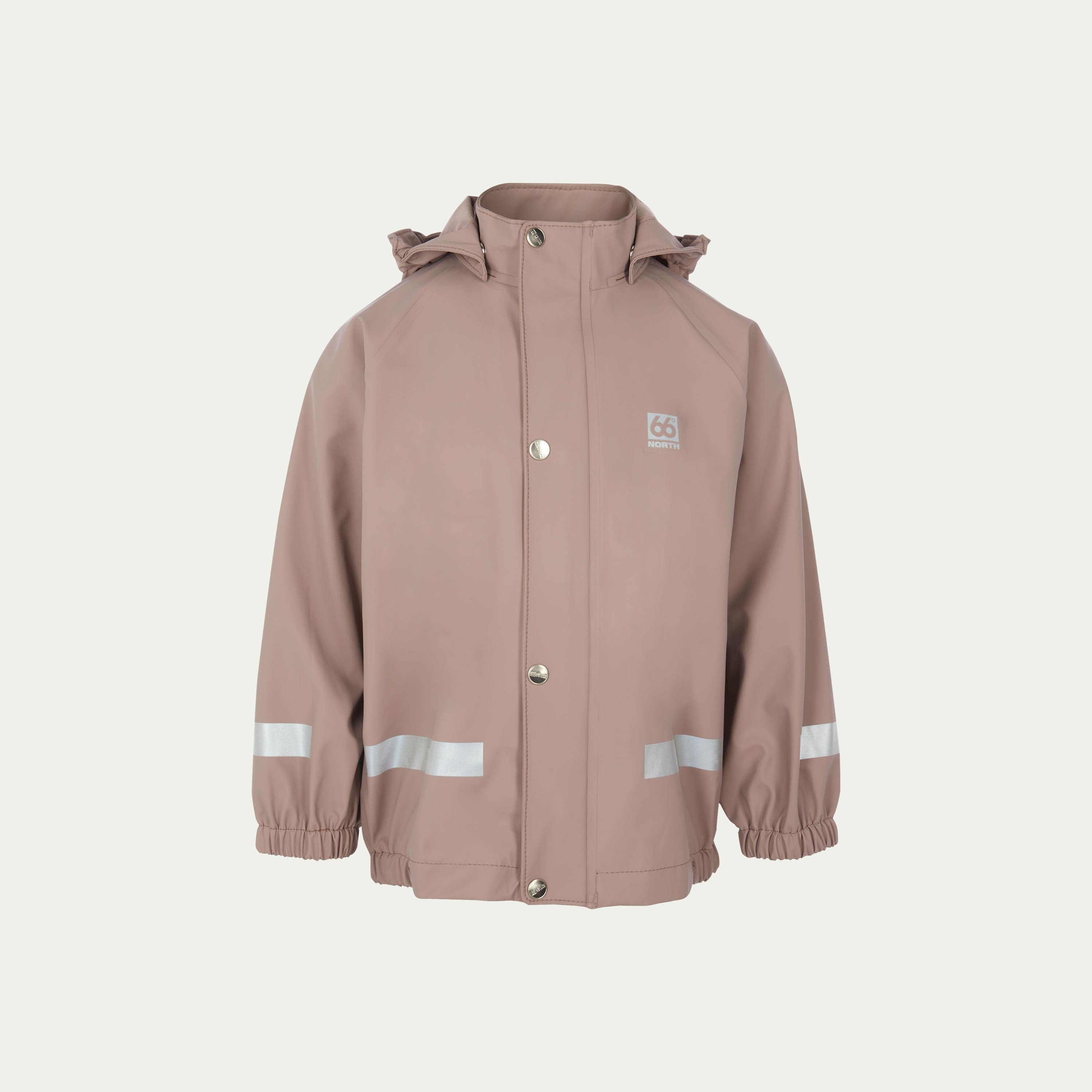 Vind- og vatnsheldur pollajakki fyrir börn úr hágæðaefni. Endurskinsmerki á ermum, baki og að framanverðu á jakka. Renndur að framan með smelltum storm- og regnlista. Teygja í hettu og stroffi. Hægt er að smella hettunni af.