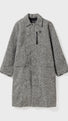 Ný útgáfa af klassíska Vindur jakkanum sem hefur notið mikilla vinsælda síðustu ár. Nú í síðu sniði með kraga, en úr sama flísfóðraða ullarefninu með vindheldri himnu. Jakkinn er með tvöföldum rennilás að framan með stormlista, tveim renndum vösum að framan og brjóstvasa. Smellur fremst á ermum til að þrengja.