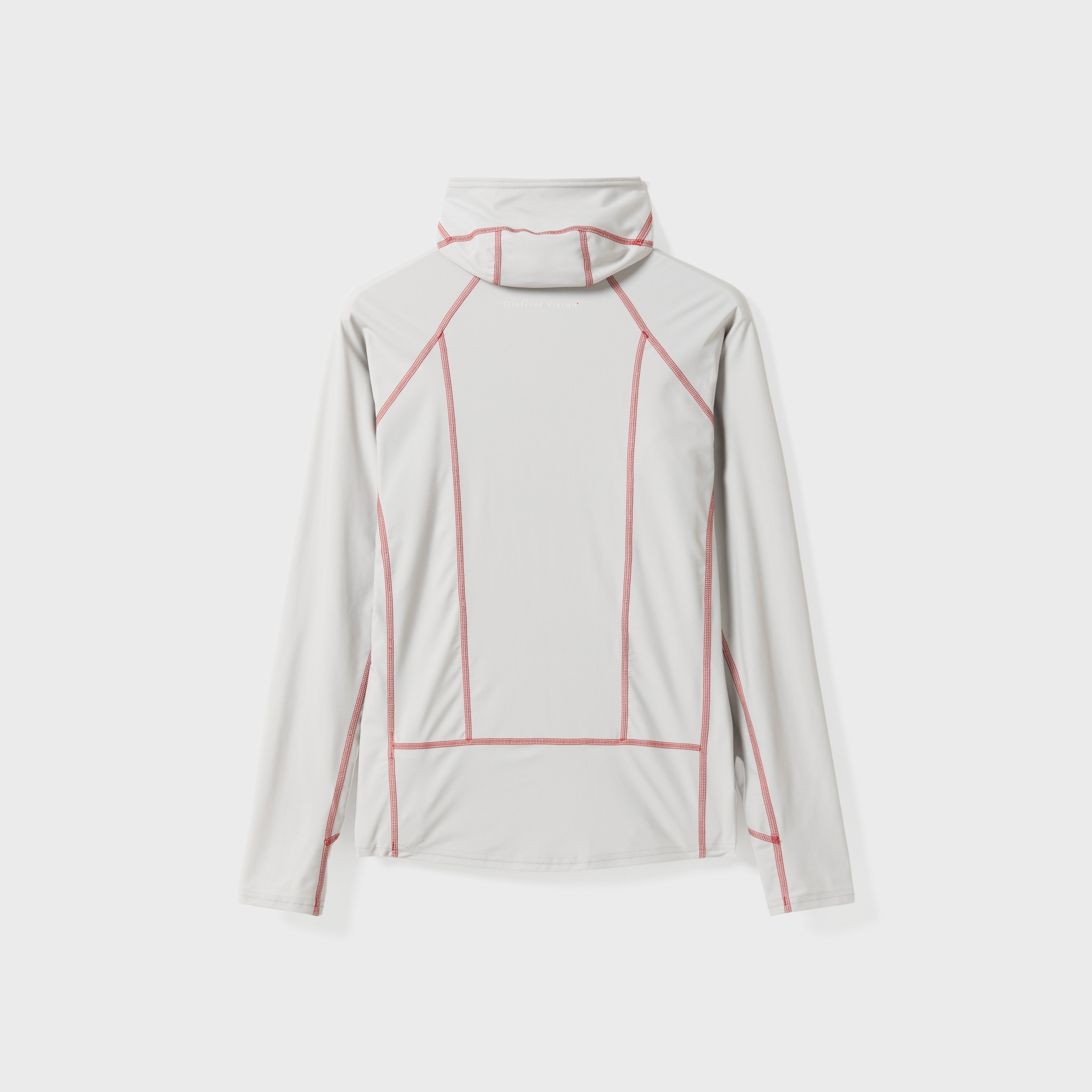 A multi-panel, contrast-stitched running top with a convertible balaclava, made from lightweight and highly breathable Italian 4-way stretch fabric, ideal for variable weather conditions.