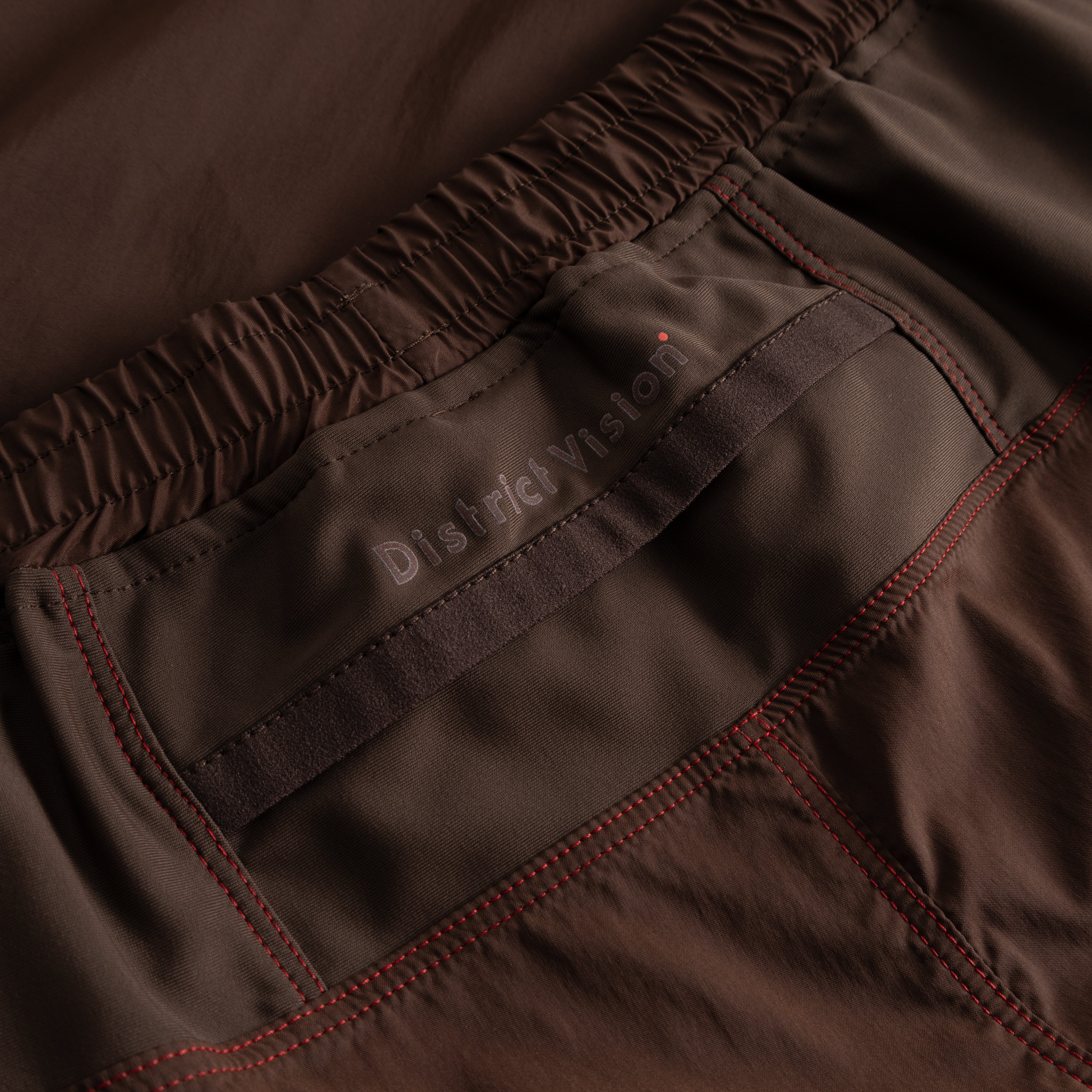 Quick-drying, highly stretchable running shorts with slant pockets and a secure rear pocket for storage.