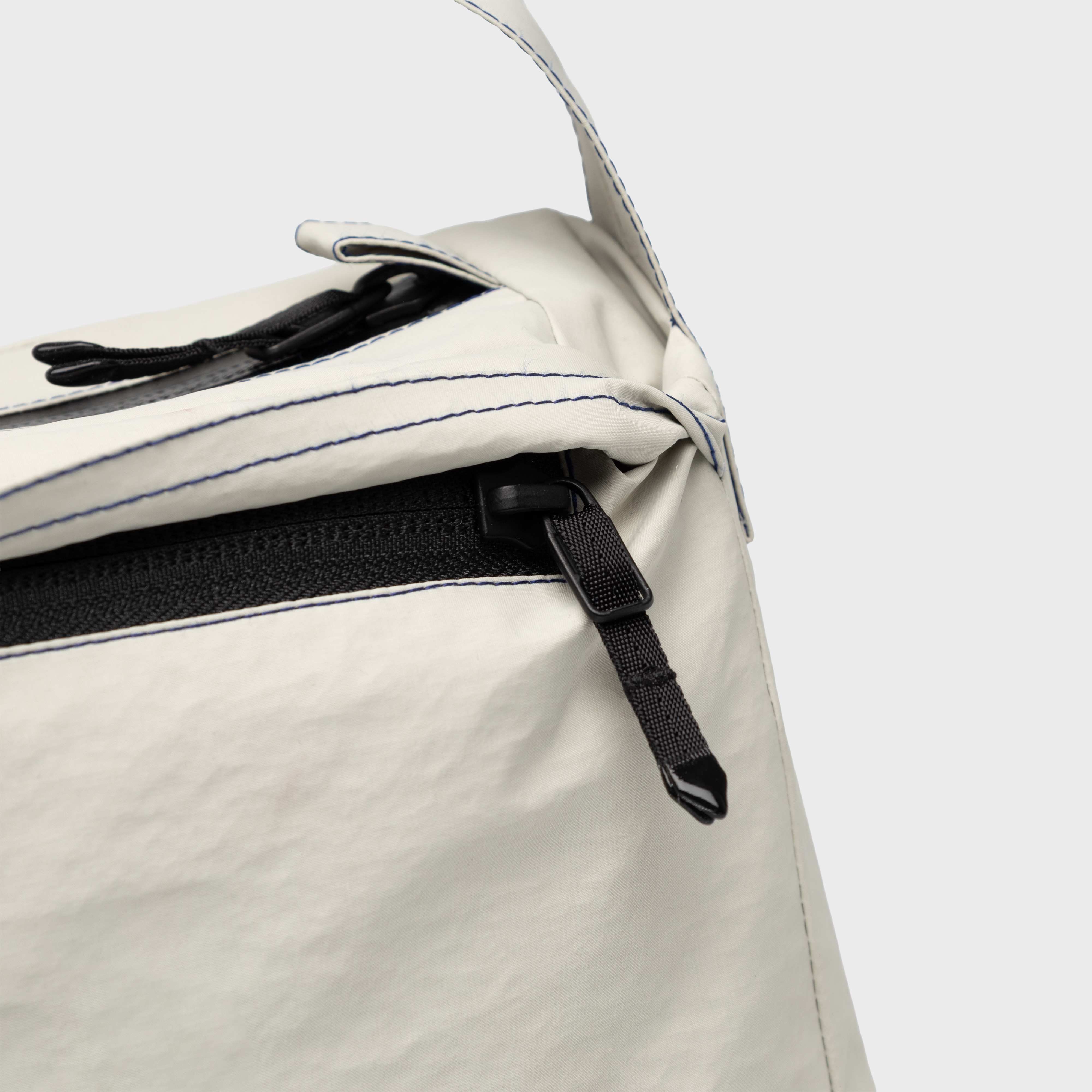 The top is secured with an AquaGuard waterproof zipper, and inside the main compartment there is a 16 cm zip pocket for added organization. Available in two colorways: an all-black version with navy contrast stitching, and a stone version, also detailed with navy contrast stitching.