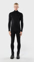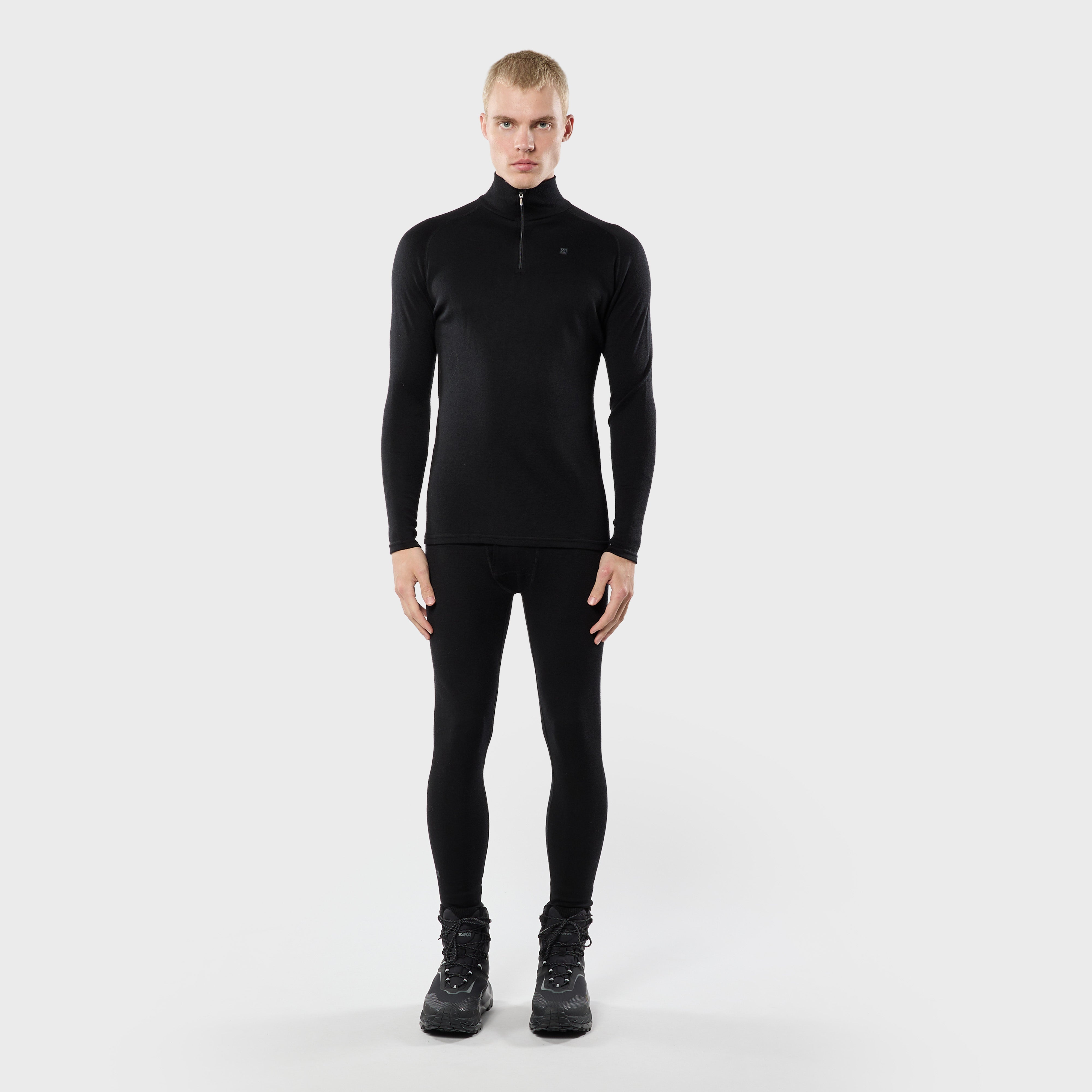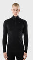 100% Merino Wool. Regulates body temperature by controlling the rate of evaporate cooling. Soft next to skin with flat needle stitching for no-rub comfort and itch free. Naturally moves moisture away from skin with fine zipper at the neck for extra ventilation.