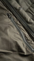 To secure the hood on the jacket so the zipper does not open, the pull tab needs to be laid flat against the zipper teeth, following the zipper's path. Ensure that the pull tab does not stick out beyond the hood.
