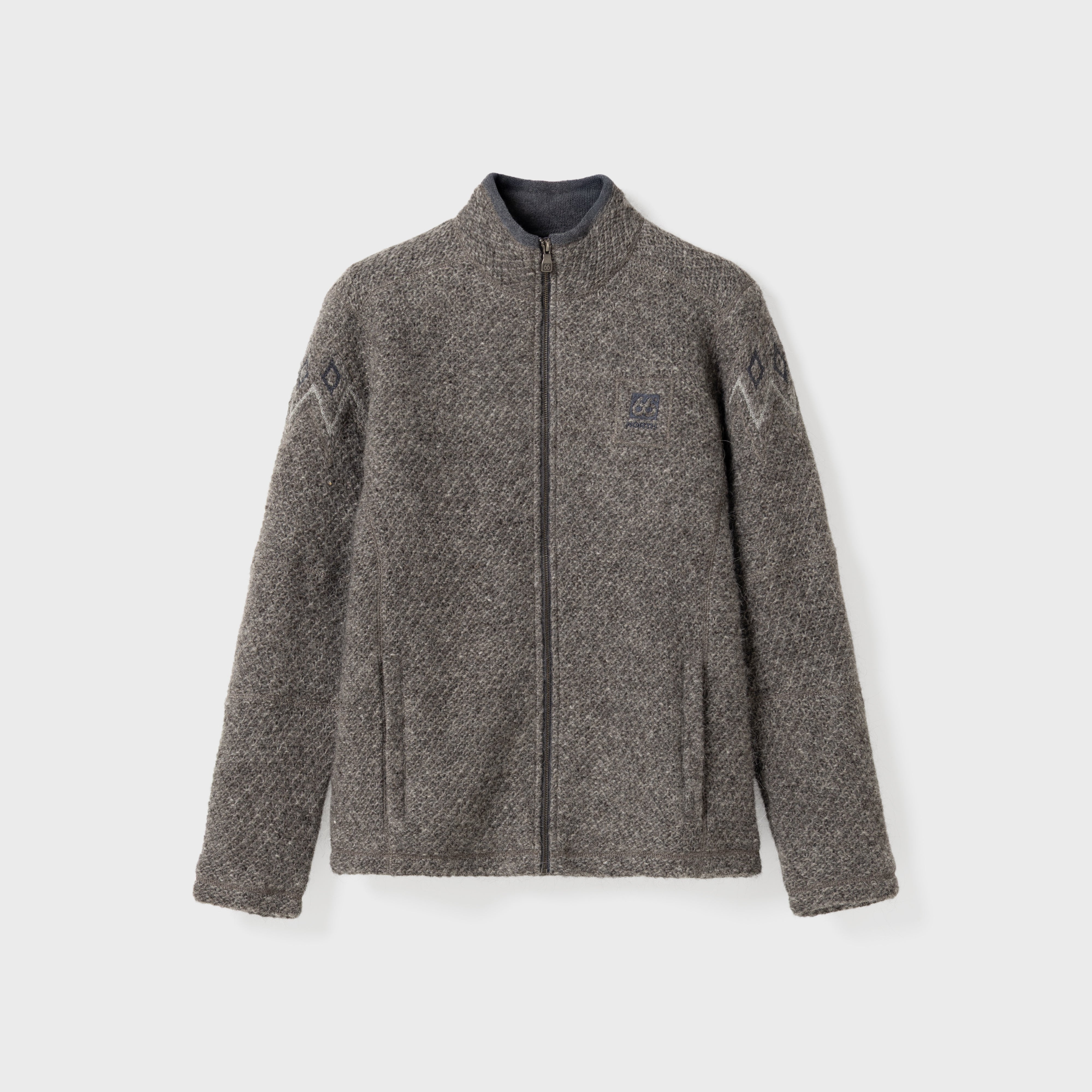 Two zipped pockets on sides. Kaldi jacket is made of Icelandic wool. The Icelandic sheep has two coats of wool, a fine warm inner coat (Þel) and a coarse long haired outer coat (Tog), providing shelter for cold, rainy and windy days.