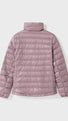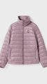 Lightweight and warm down jacket with a high collar.