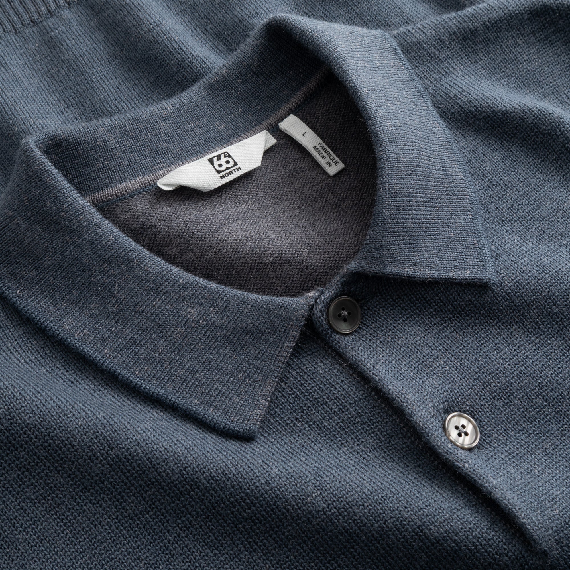Kjalarnes Wool Polo is a classic long-sleeve polo sweater crafted from pure new 100% wool, knitted in a two-coloured jersey. Designed with saddle shoulder seams and ribbed detailing at the neckline, cuffs, and hem for a structured fit. Finished with a woven and embroidered logo patch on the sleeve. The fit is unisex.