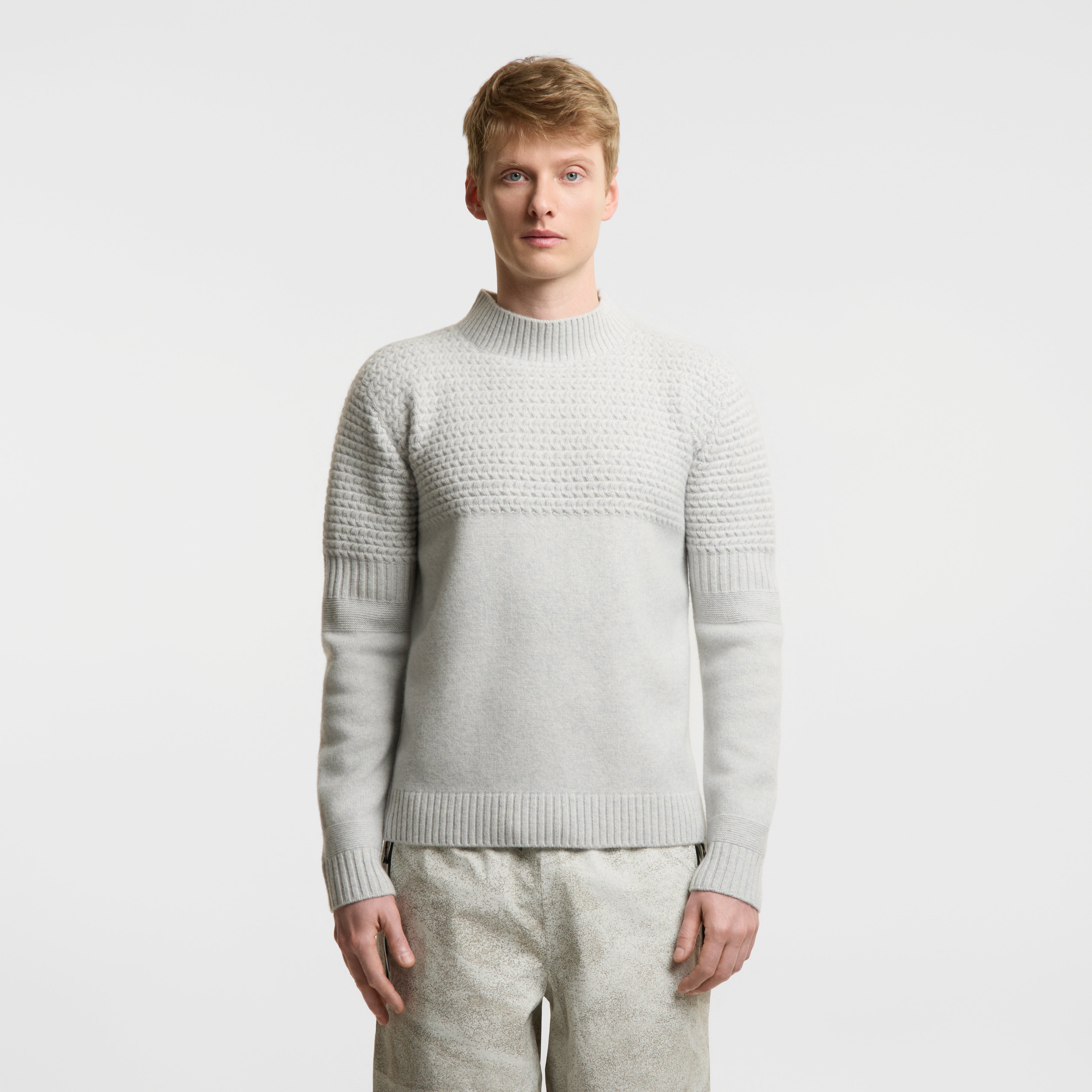 Inspired by traditional Icelandic fisherman sweaters, this garment, made of extra-fine non-mulesed wool, features a textured stitch that traps air next to the skin for extra warmth.