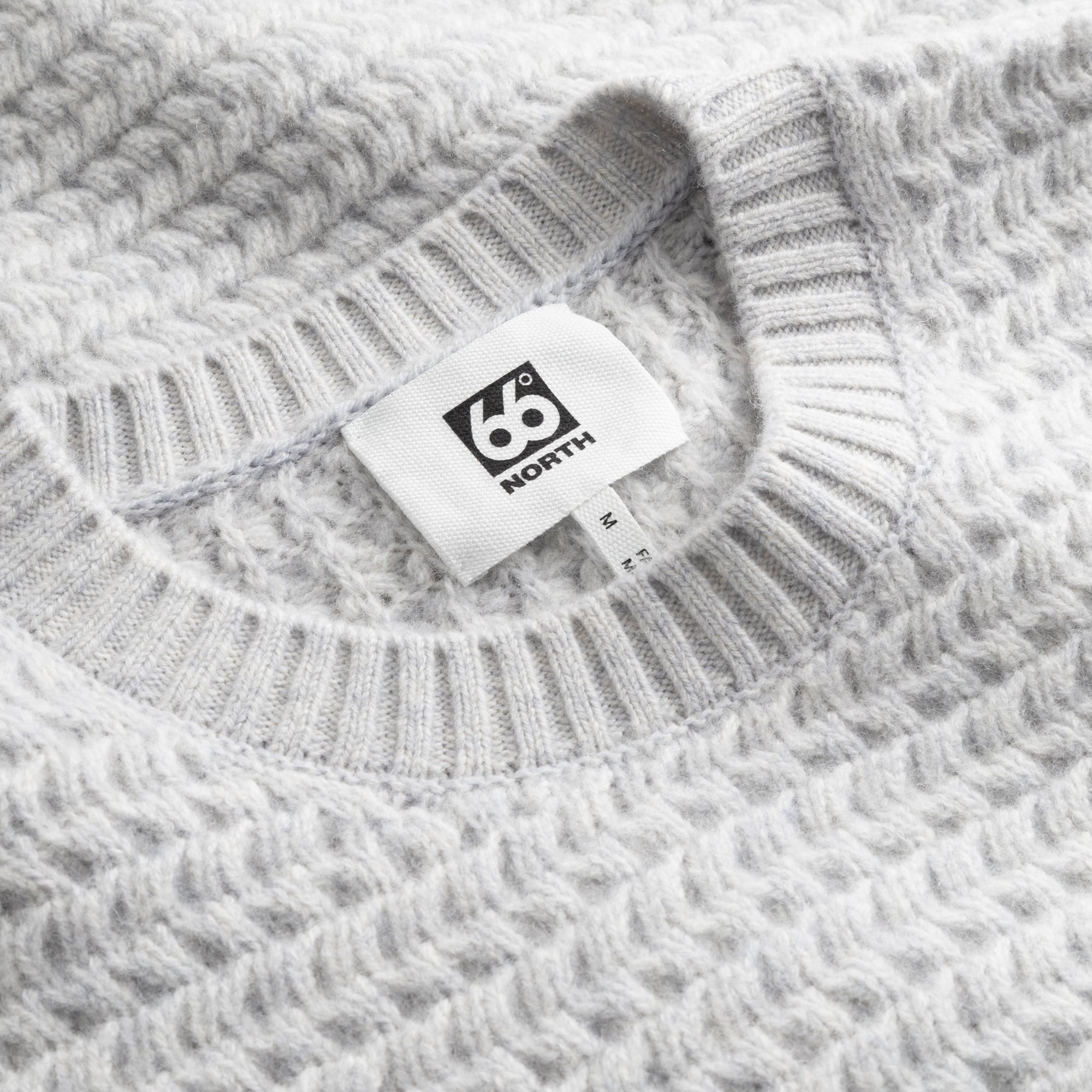 Inspired by traditional Icelandic fisherman sweaters, this garment, made of extra-fine non-mulesed wool, features a textured stitch that traps air next to the skin for extra warmth.