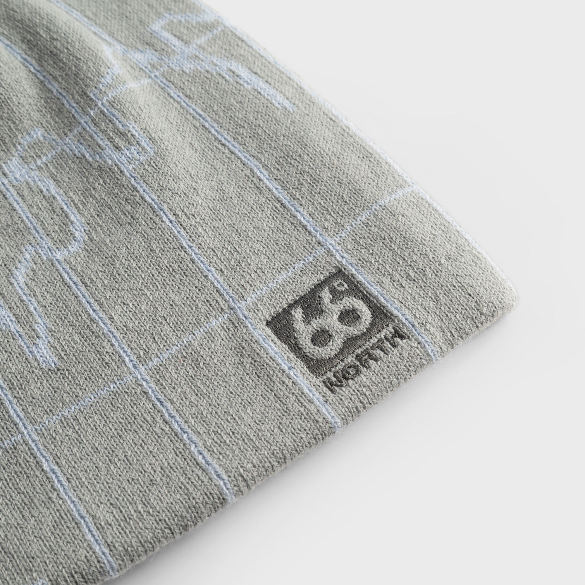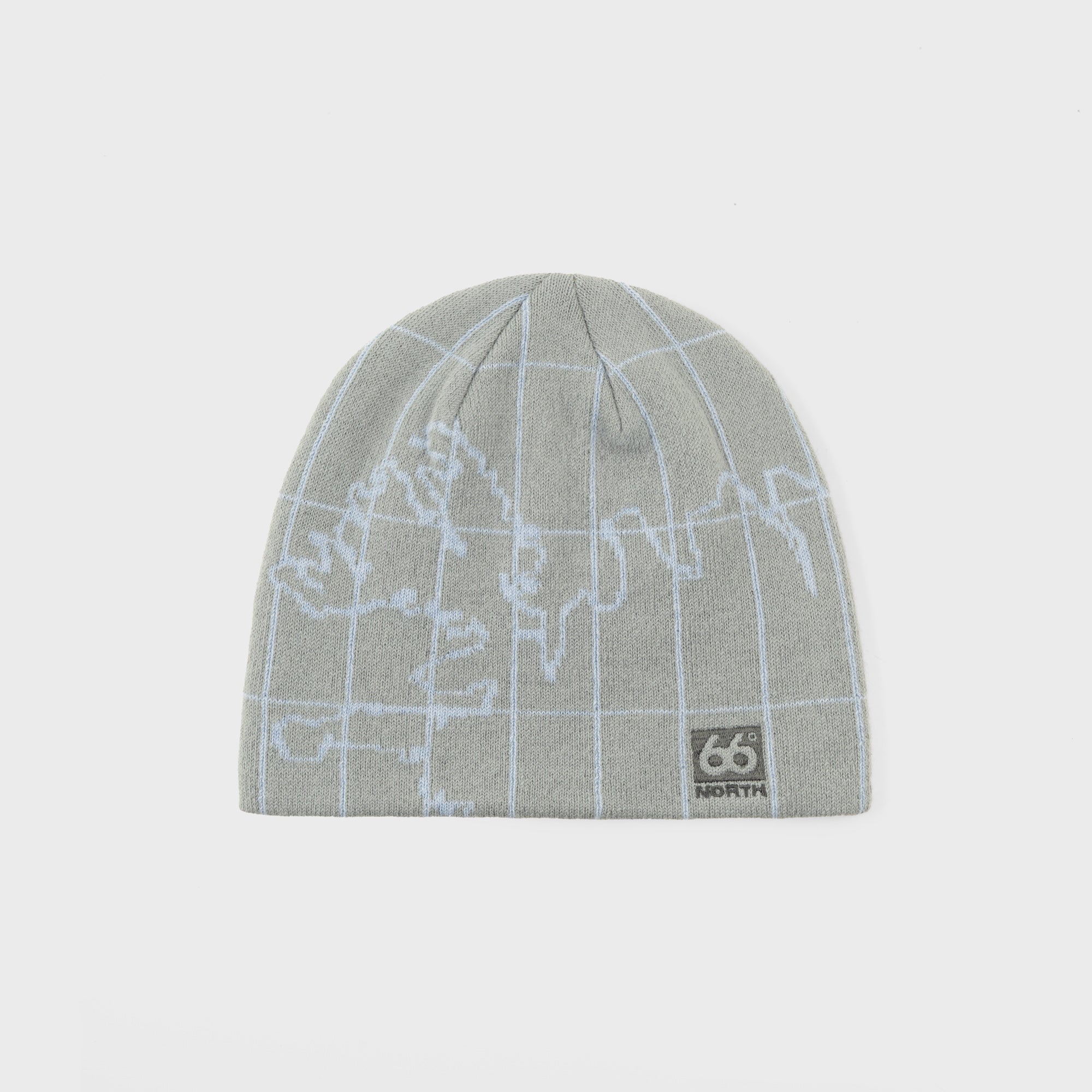 Wool-blend beanie featuring a map of Iceland, with the 66th latitude running through Suðureyri, 66°North's hometown.