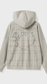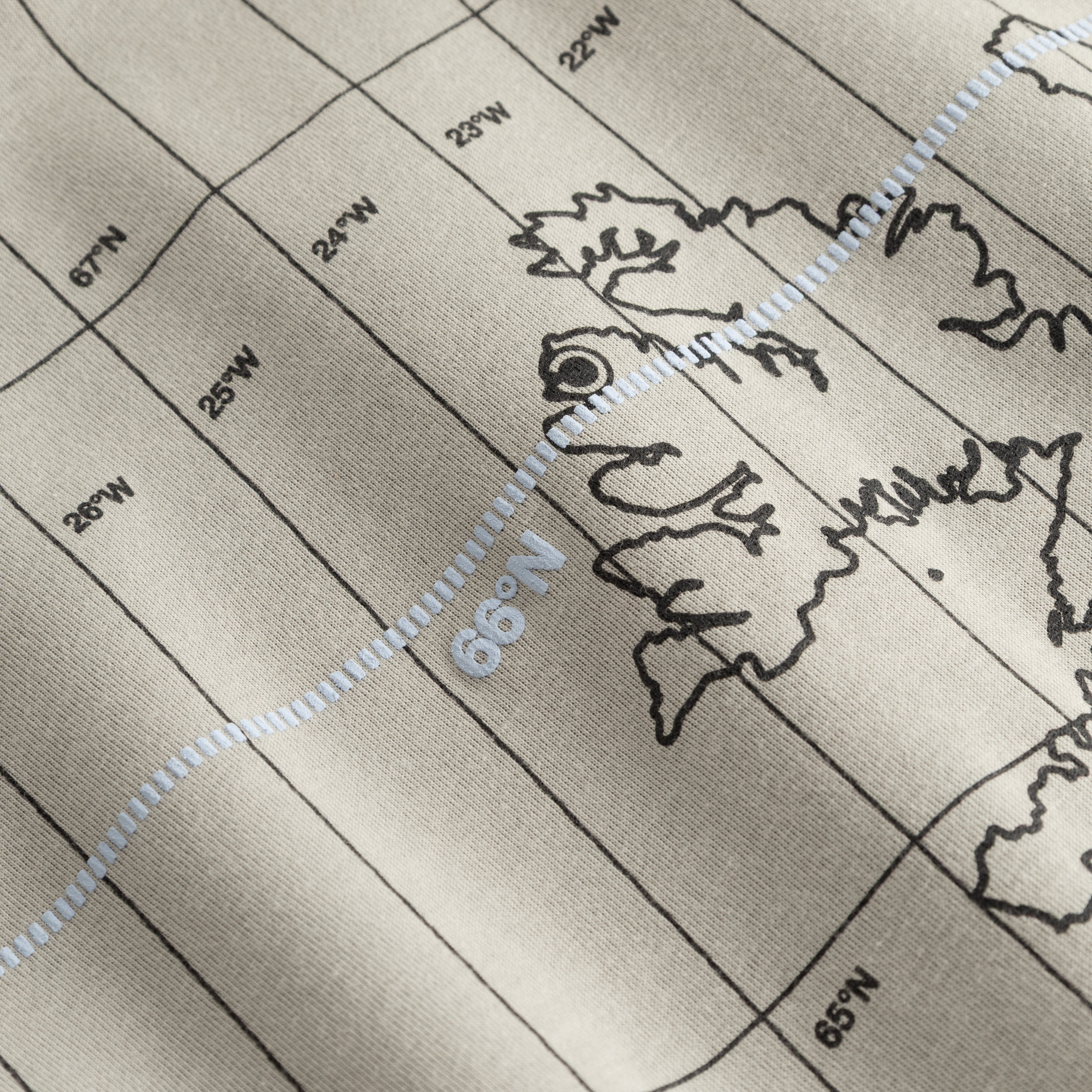 Oversized hoodie with a graphic print on the back, showing the 66 latitude.
