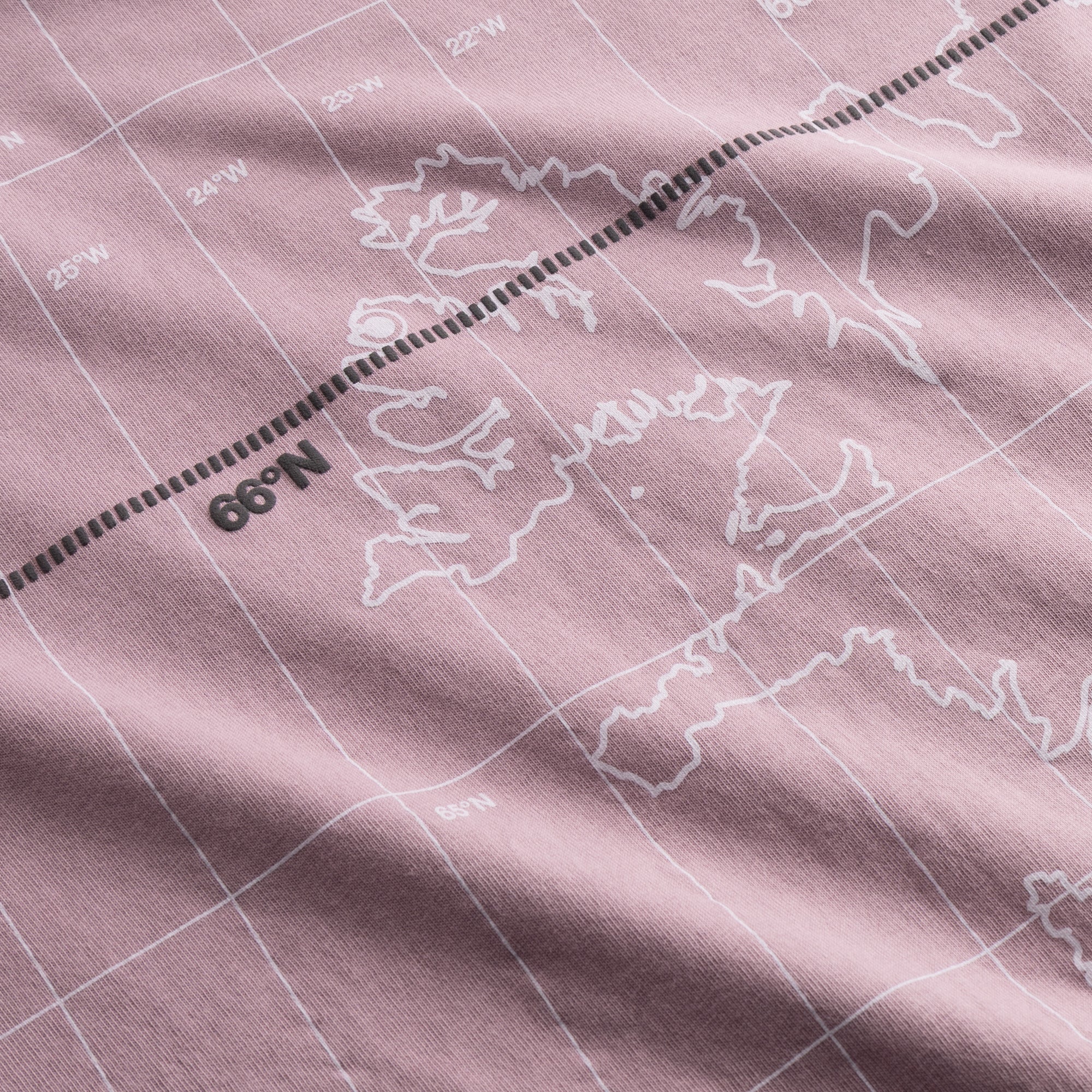 T-shirt with a graphic print on the back, showing the 66 latitude.