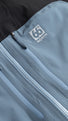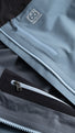 The jacket features YKK AquaGuard® zippers with webbing pullers placed in backpack-compatible positions. It includes two hand pockets, two external chest pockets, one external pass pocket, one internal zipped security pocket, and a large mesh dump pocket, providing ample storage.