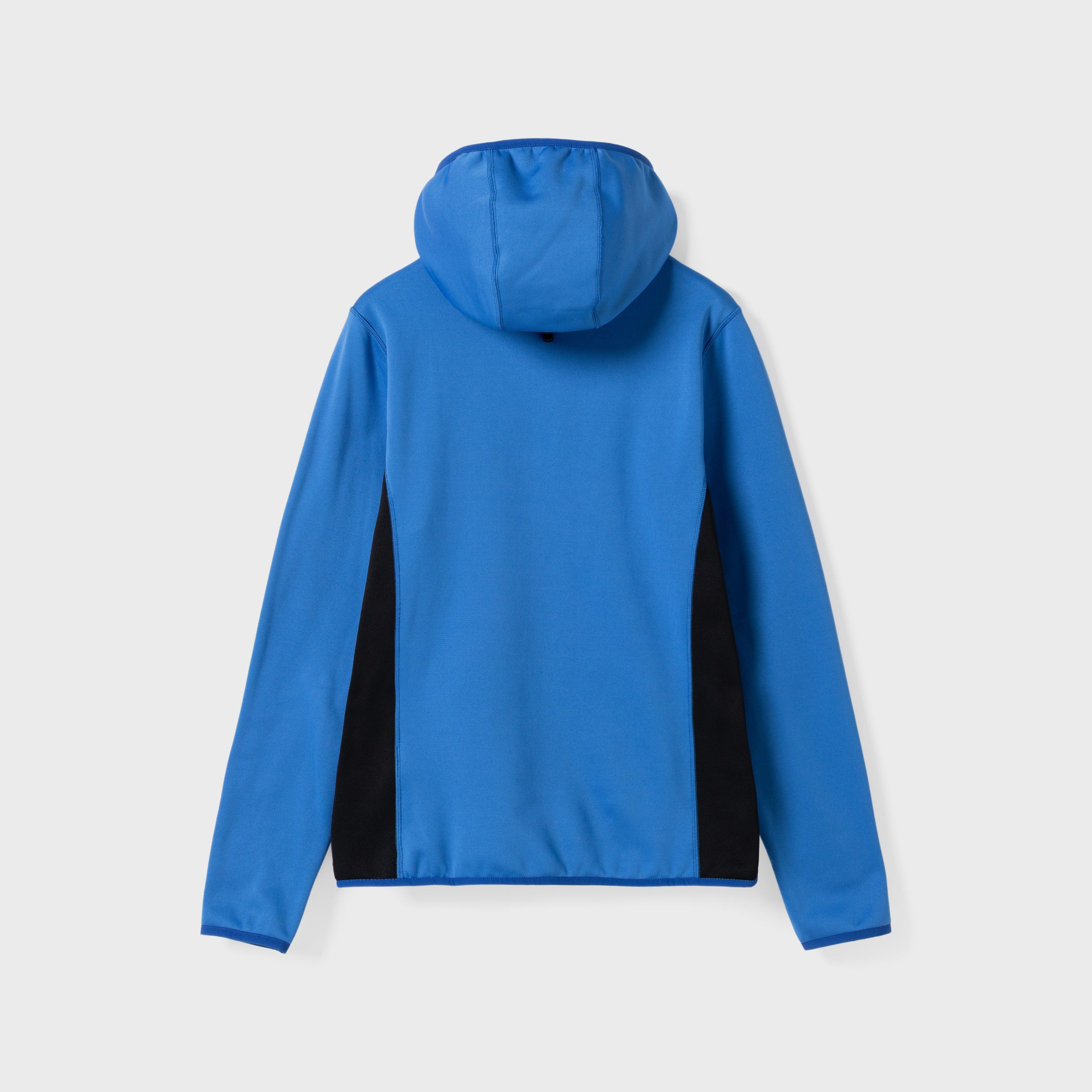 A mid-layer fleece jacket with hoodie for the outdoor sports